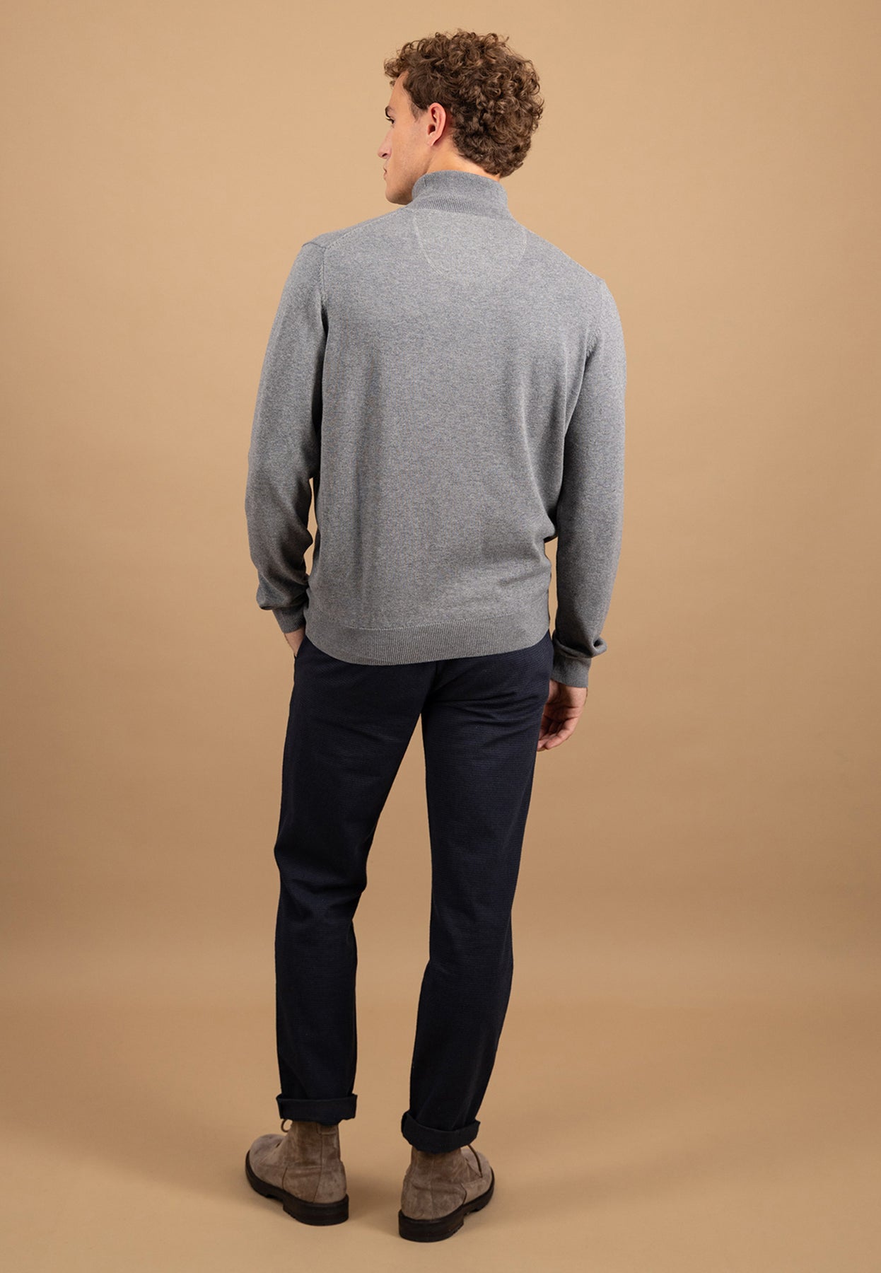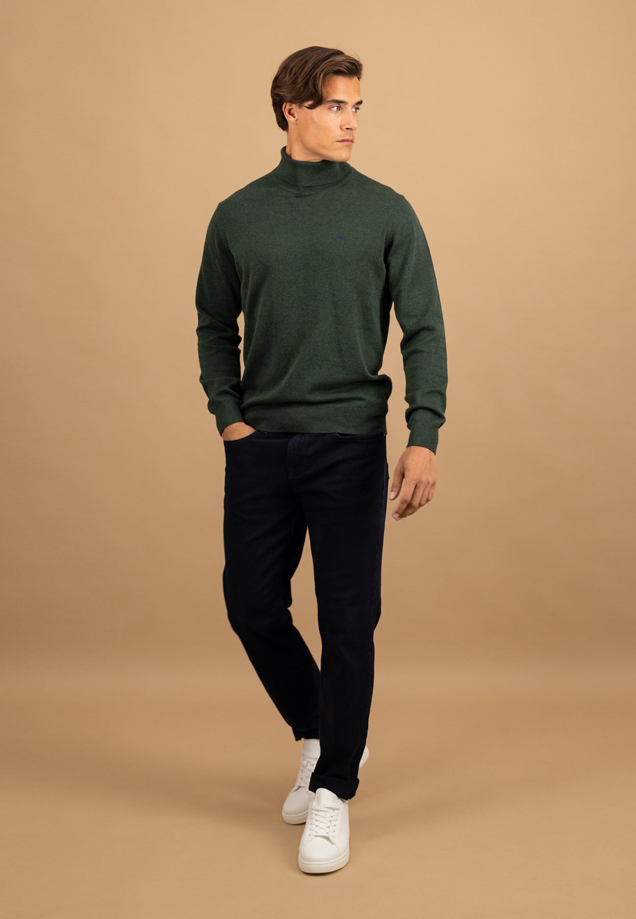 Der hoch geschnittene Kragen spendet angenehme Wärme, während elastische Rippbündchen an Ärmeln und Saum für eine gute Passform sorgen. Das dezente Logo auf der Brust unterstreicht den gepflegten Look. Vielseitig kombinierbar zu Jeans, Chino oder unter dem Sakko.