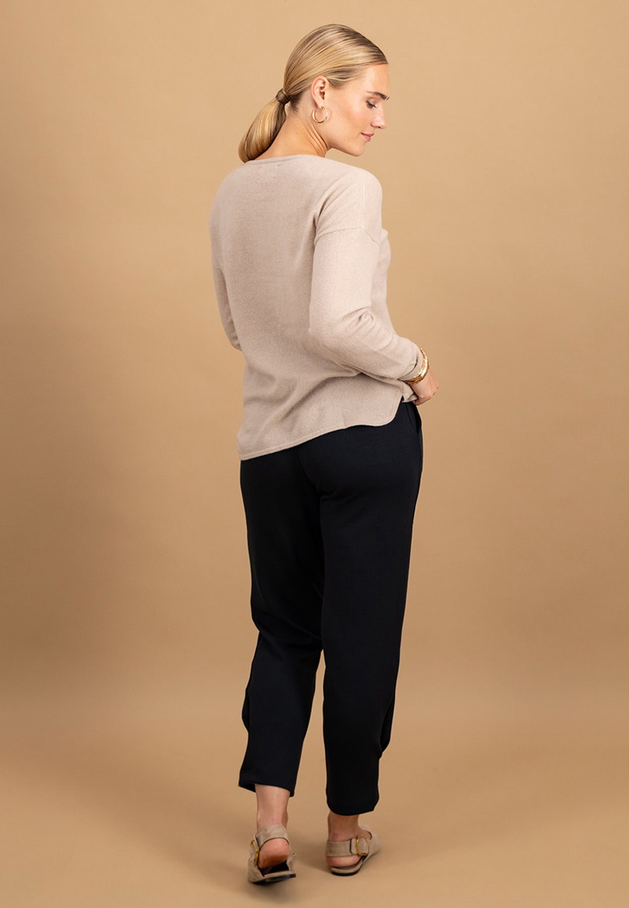 Mit seinem cleanen Design, dem klassischen Rundhalsausschnitt und den leicht überschnittenen Schultern strahlt er entspannte Raffinesse aus. Die edle Kaschmirqualität verleiht dem Modell eine wunderbar weiche Haptik und sorgt für luxuriöse Wärme. Der gerade, lockere Schnitt macht den Pullover vielseitig kombinierbar – ob zur Jeans, zur Stoffhose oder als edler Kontrast zu femininen Röcken.