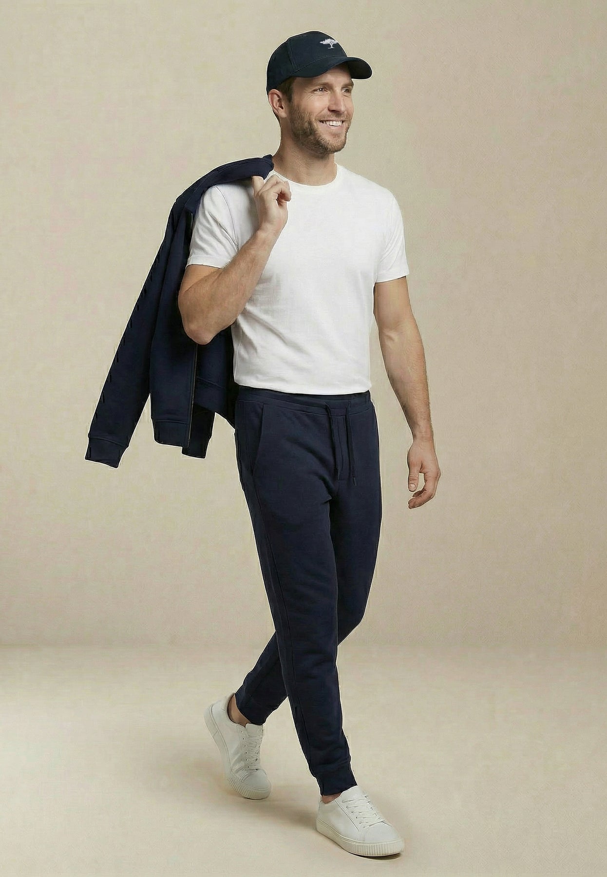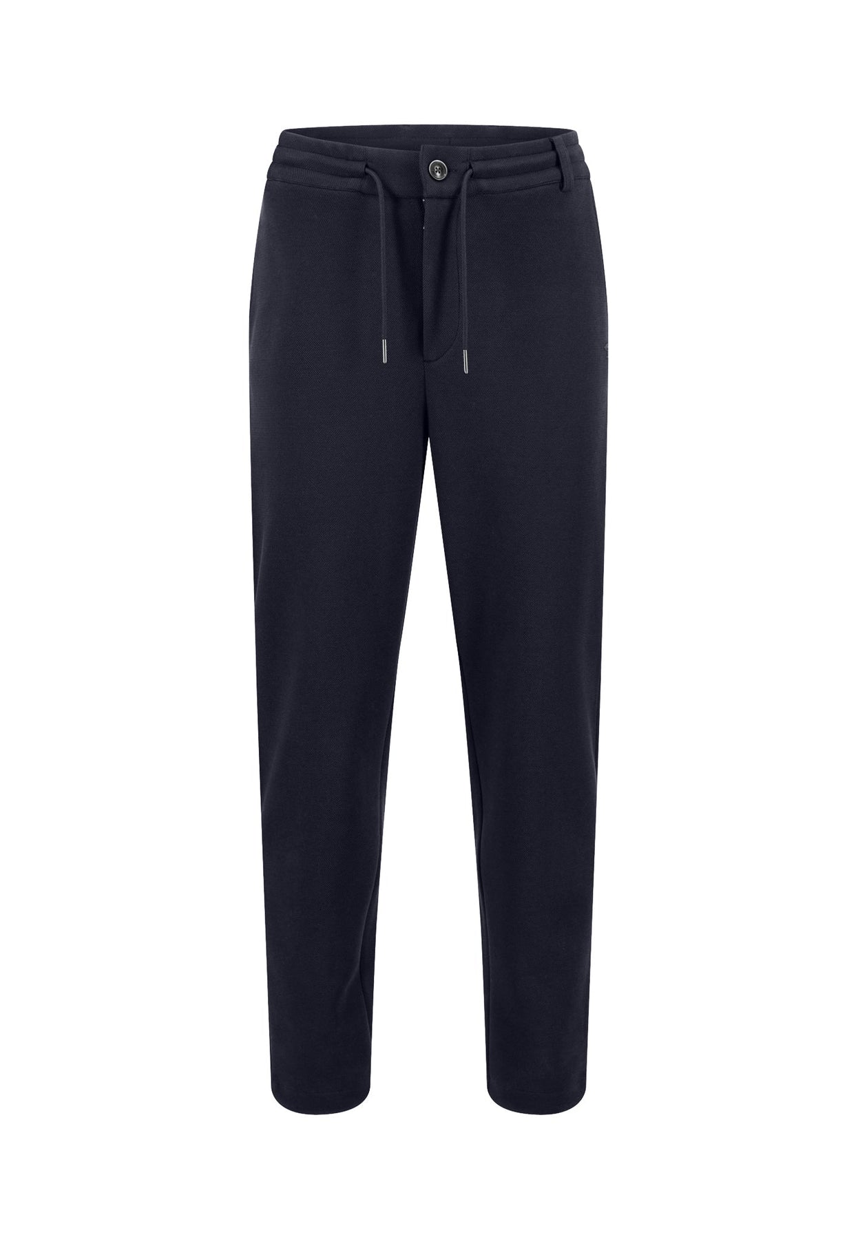 Diese Hose aus einem komfortablen Baumwollmix überzeugt mit ihrer angenehmen Haptik und einer entspannten, geraden Silhouette. Der elastische Bund mit Kordelzug sorgt für eine flexible Passform und hohen Tragekomfort im Alltag. Die feine Struktur des Materials verleiht dem Design eine moderne Note, während der Straight-Leg-Schnitt für eine zeitlose Optik steht. Vielseitig kombinierbar eignet sich die Hose ideal für entspannte Casual-Looks und komfortable Alltagsoutfits.