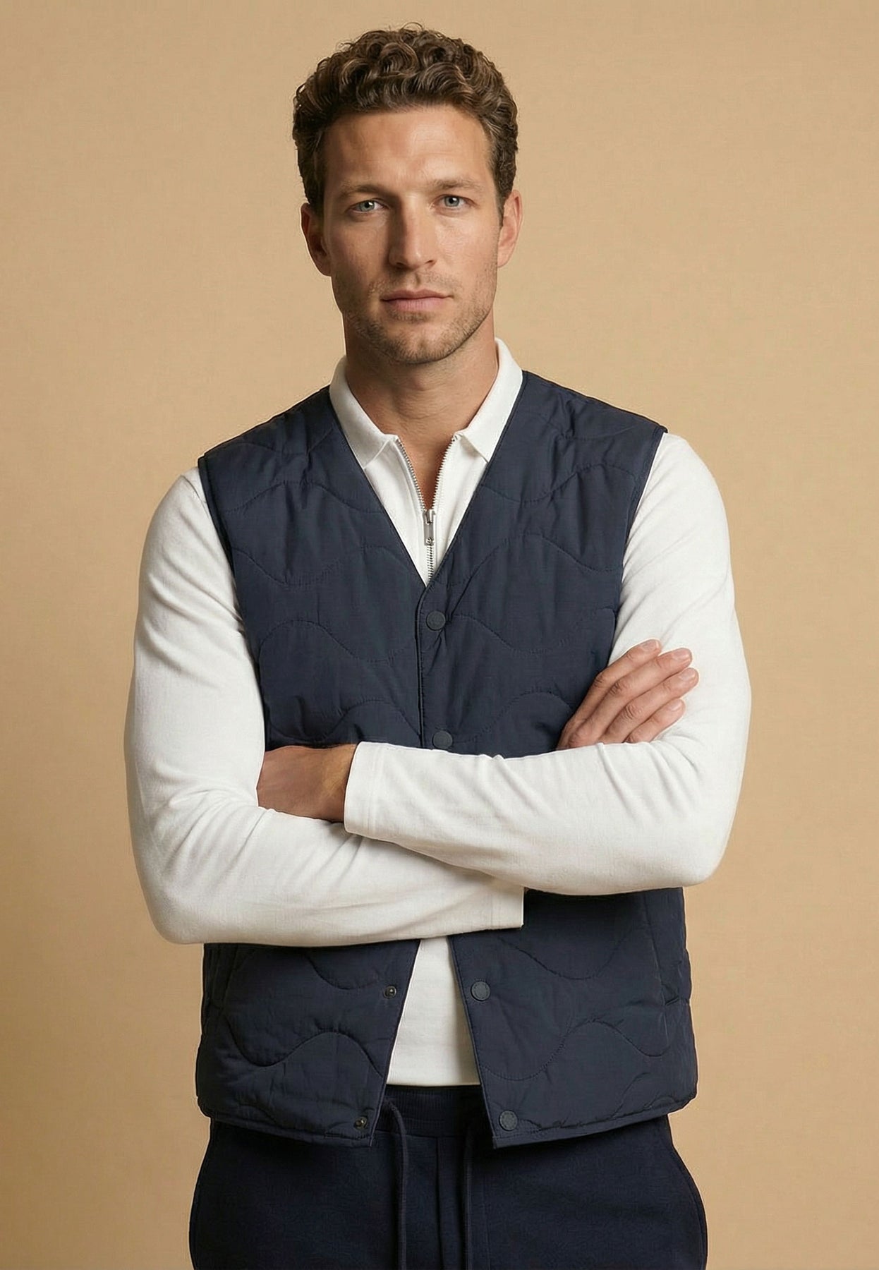 Mit ihrer markanten Wellensteppung bringt diese Weste einen modernen Twist in deinen Lagenlook – leicht, funktional und stylisch zugleich.