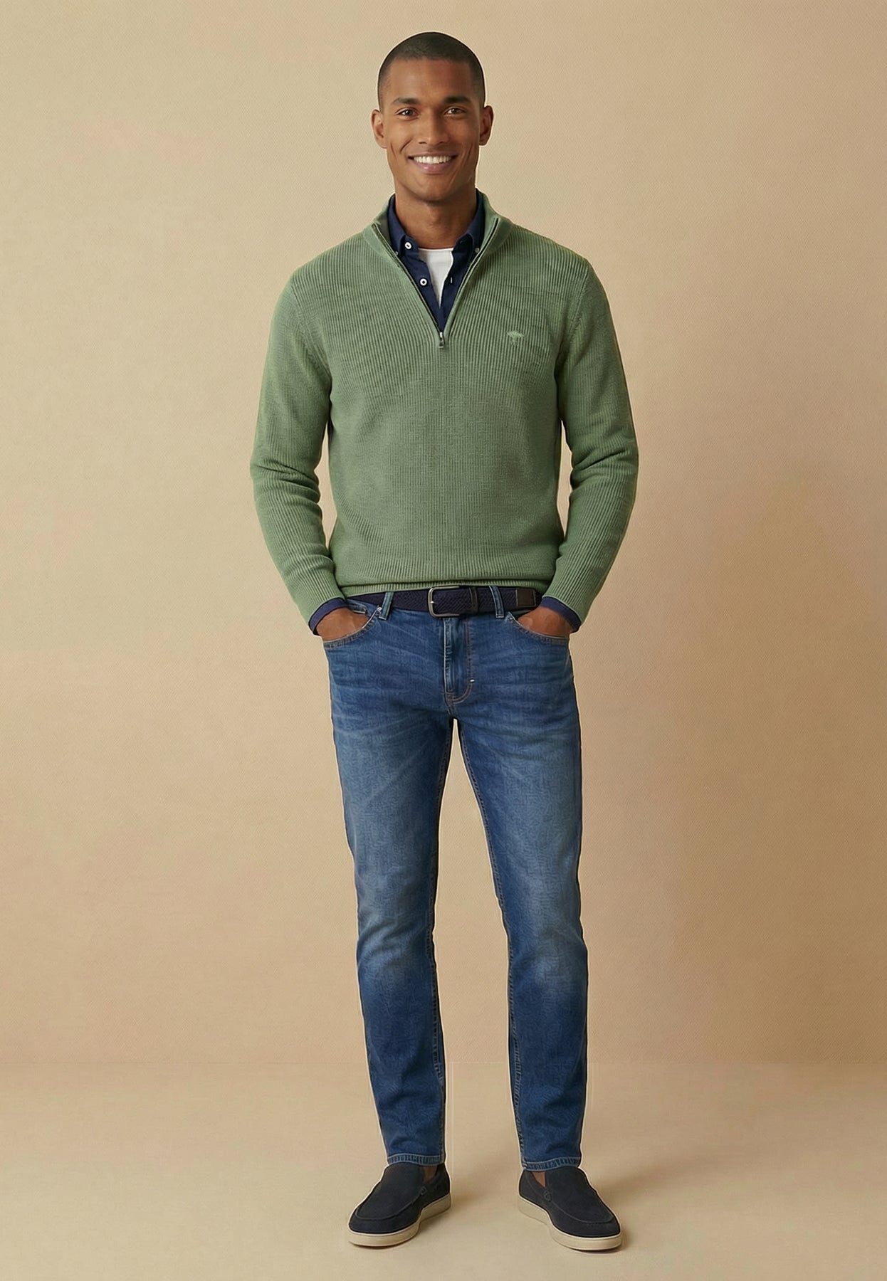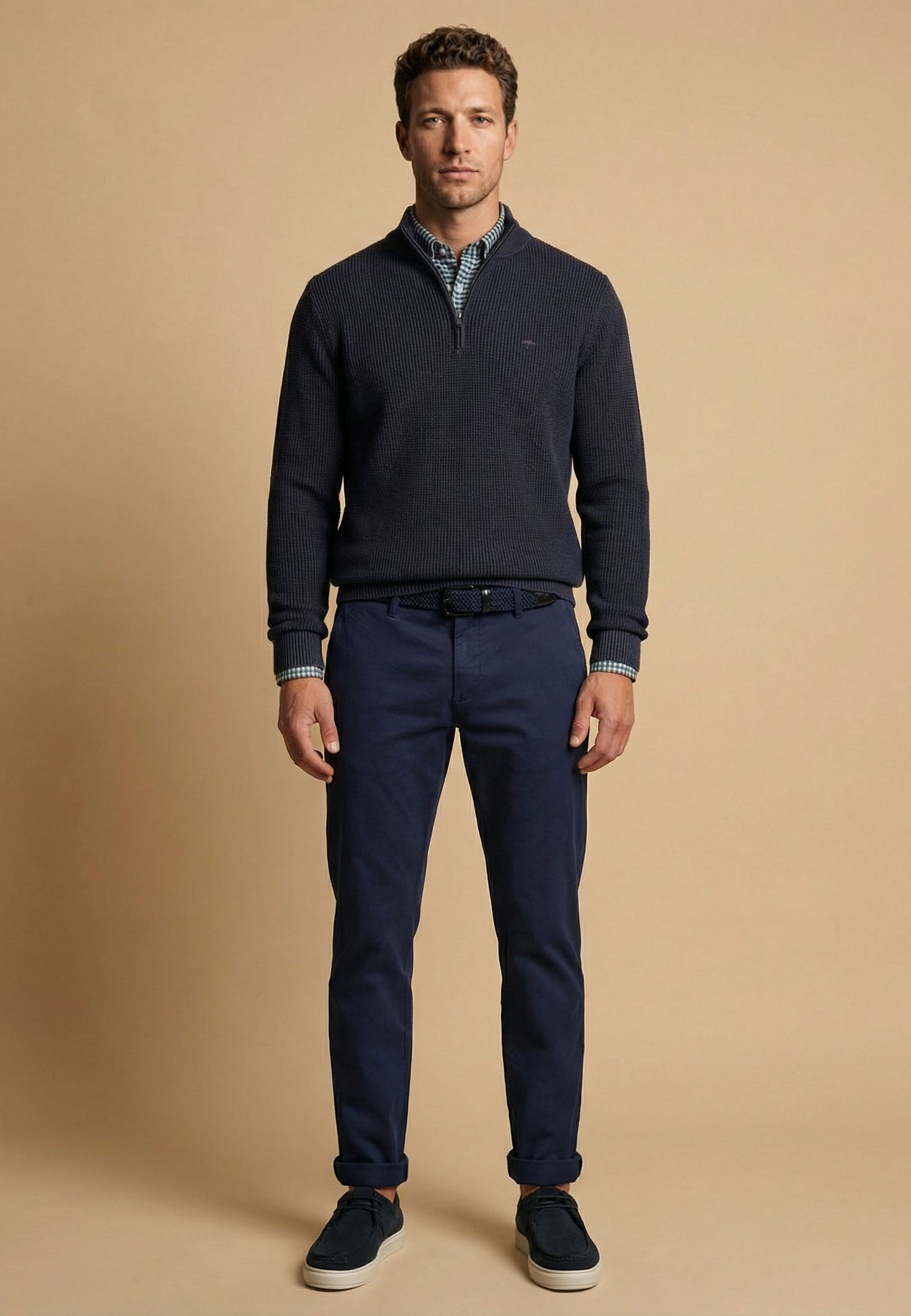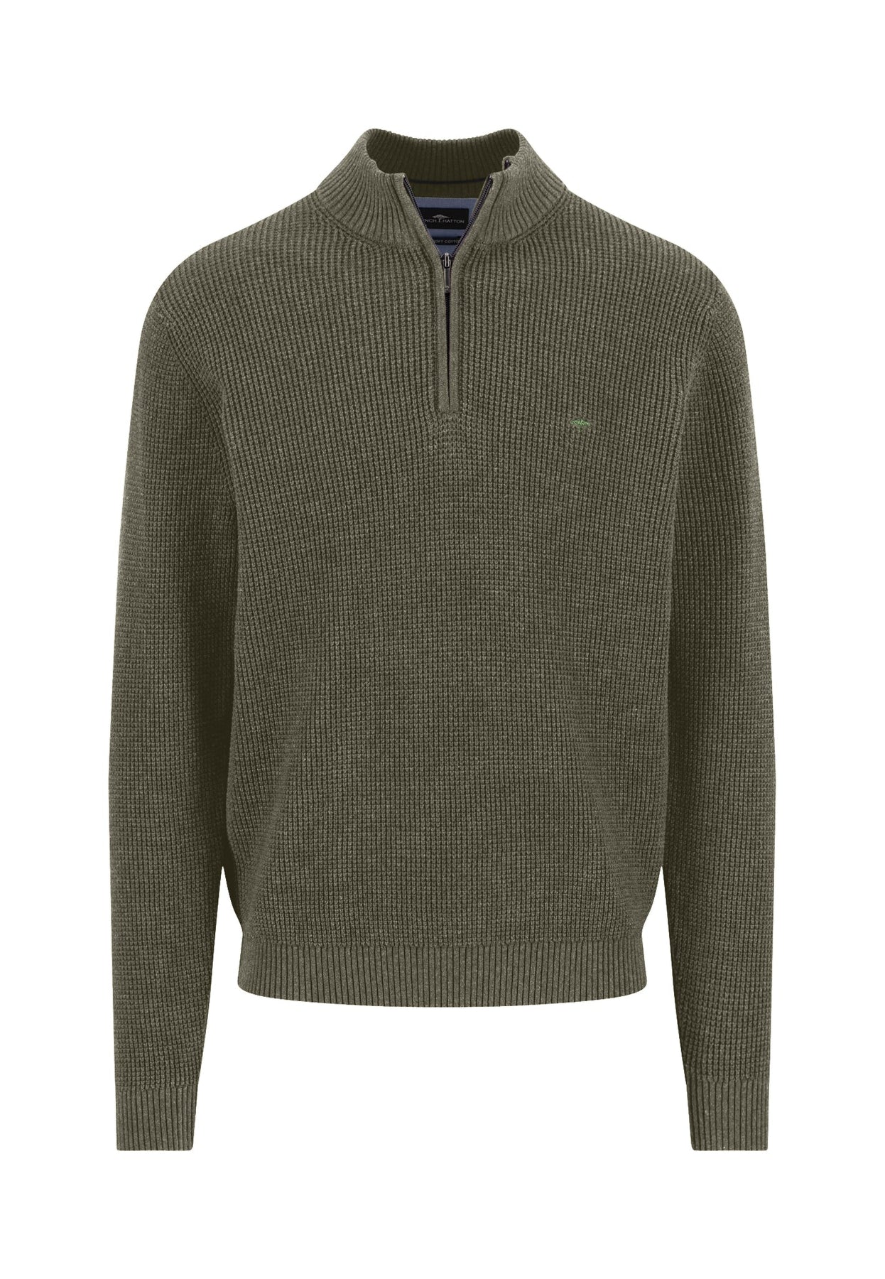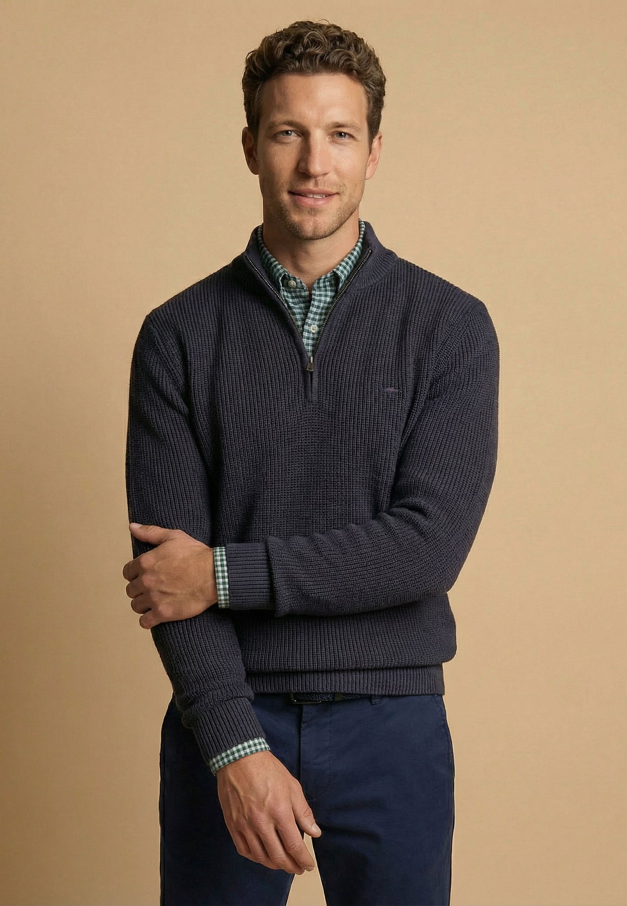 Der halbe Reißverschluss mit hohem Kragen verleiht diesem Troyer seinen sportlich-eleganten Look.