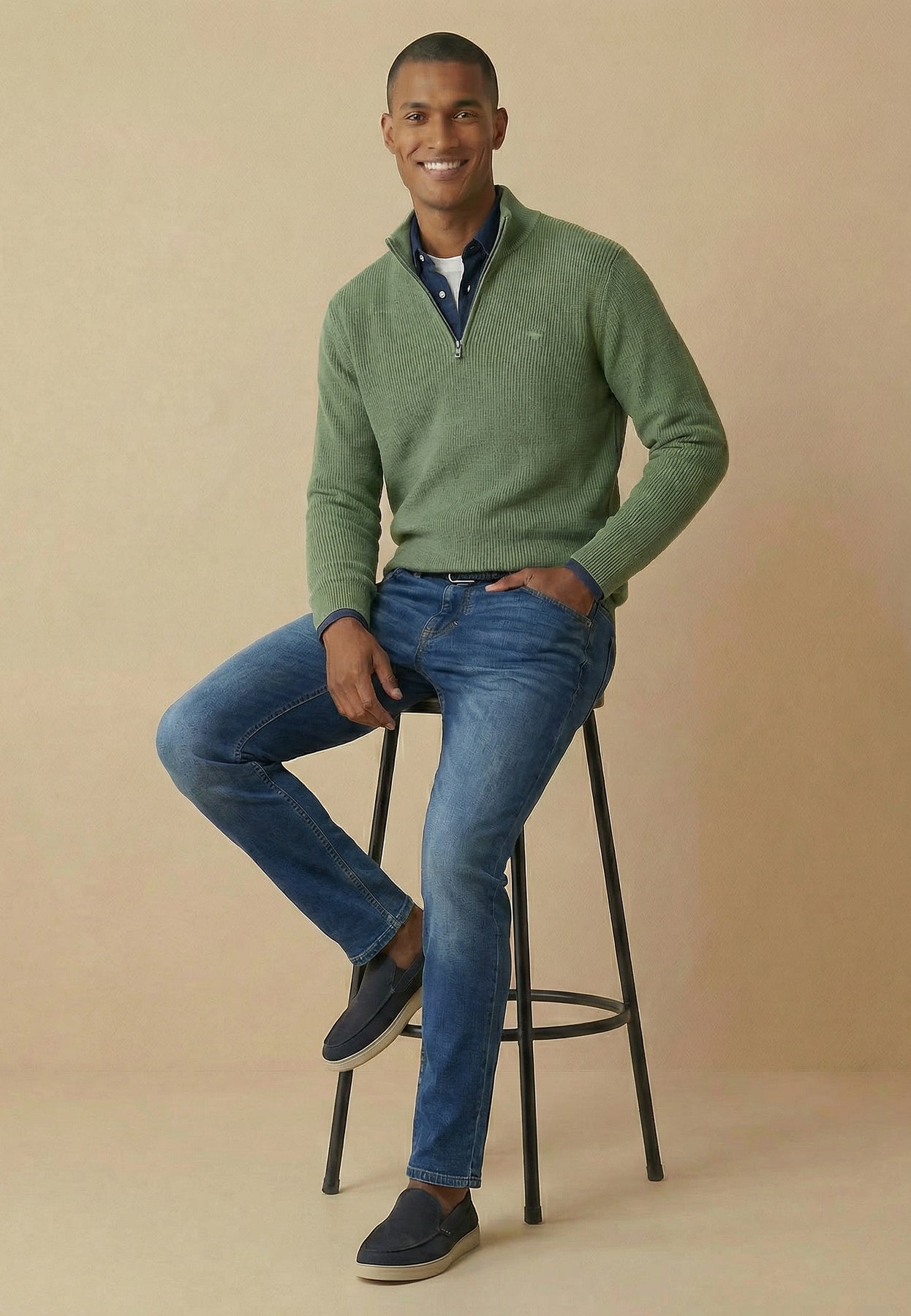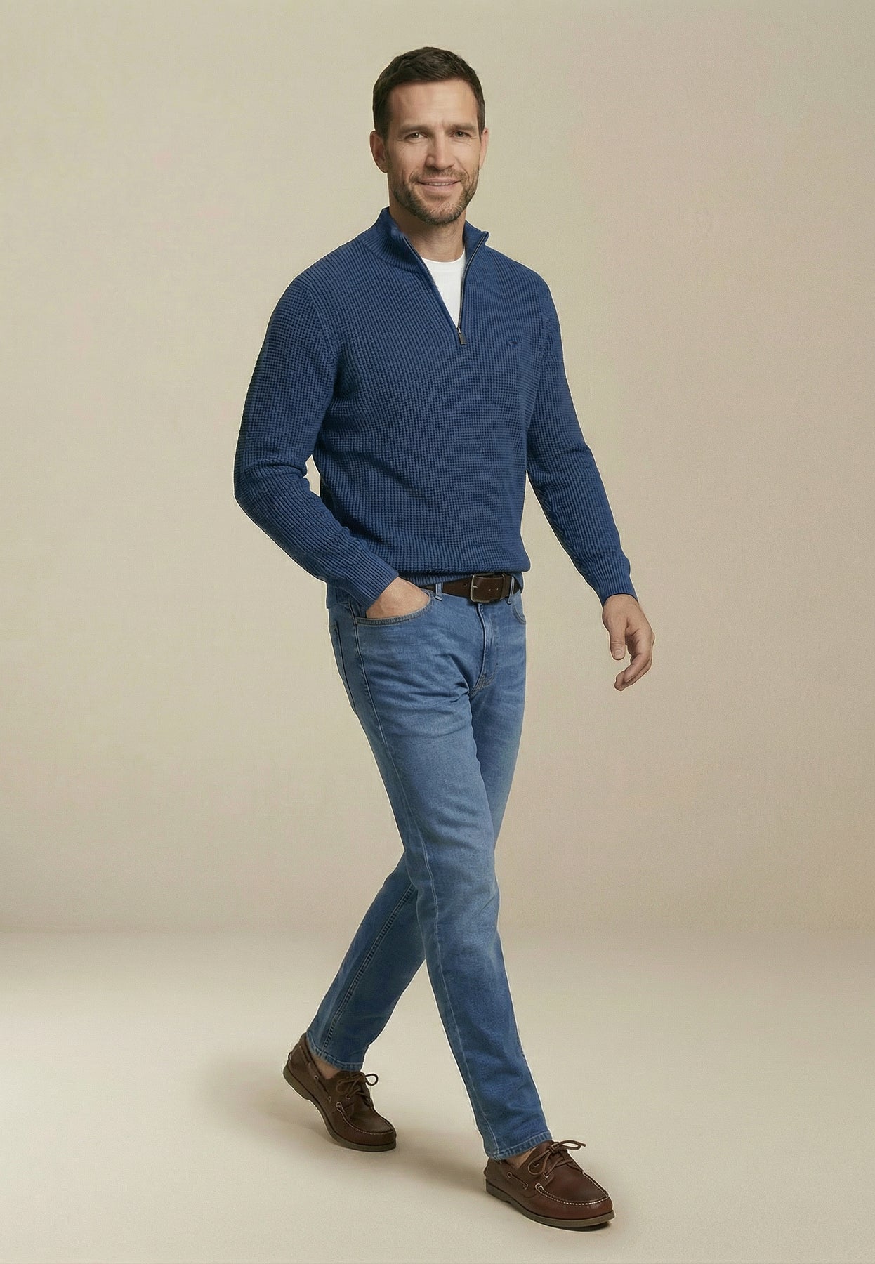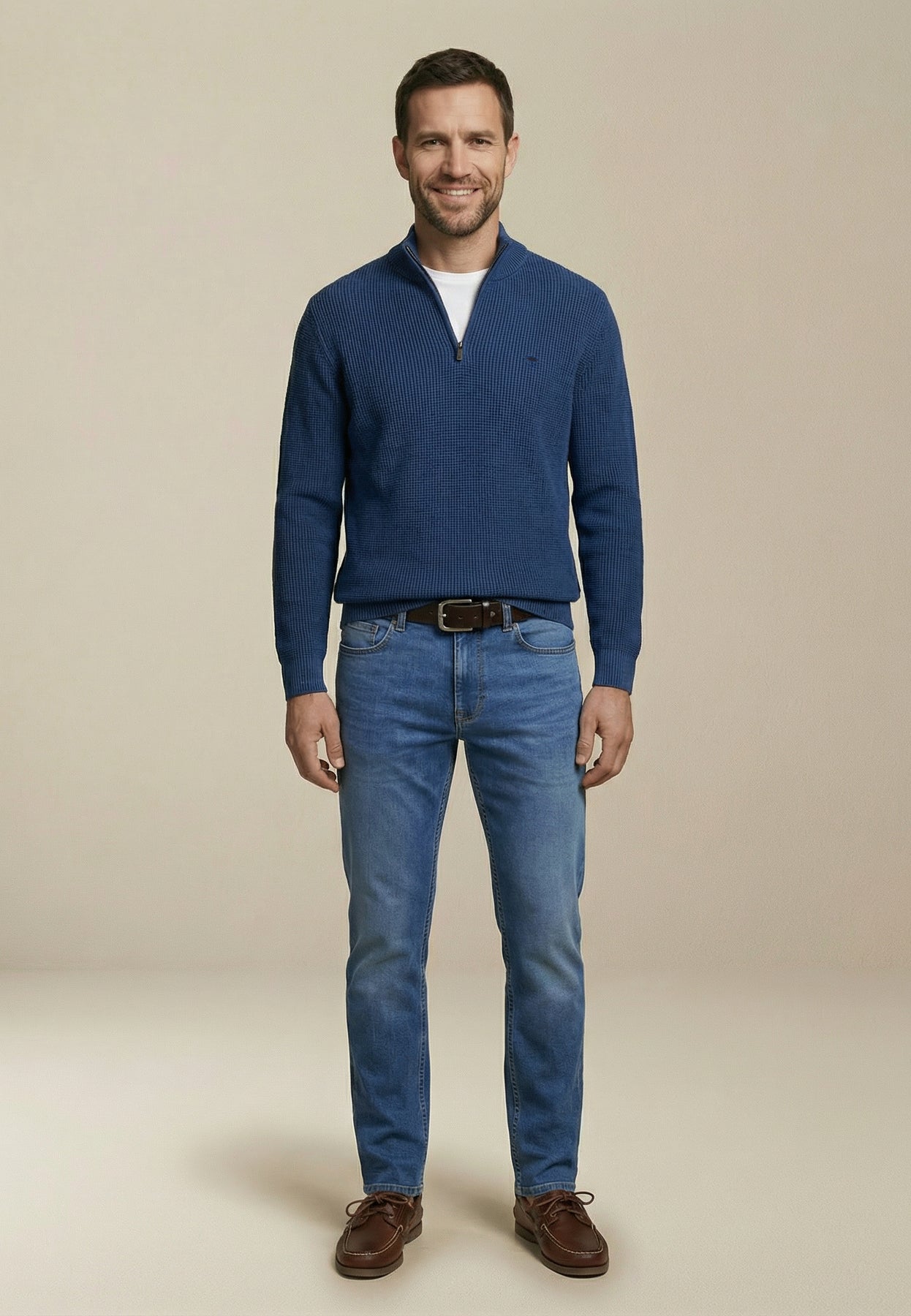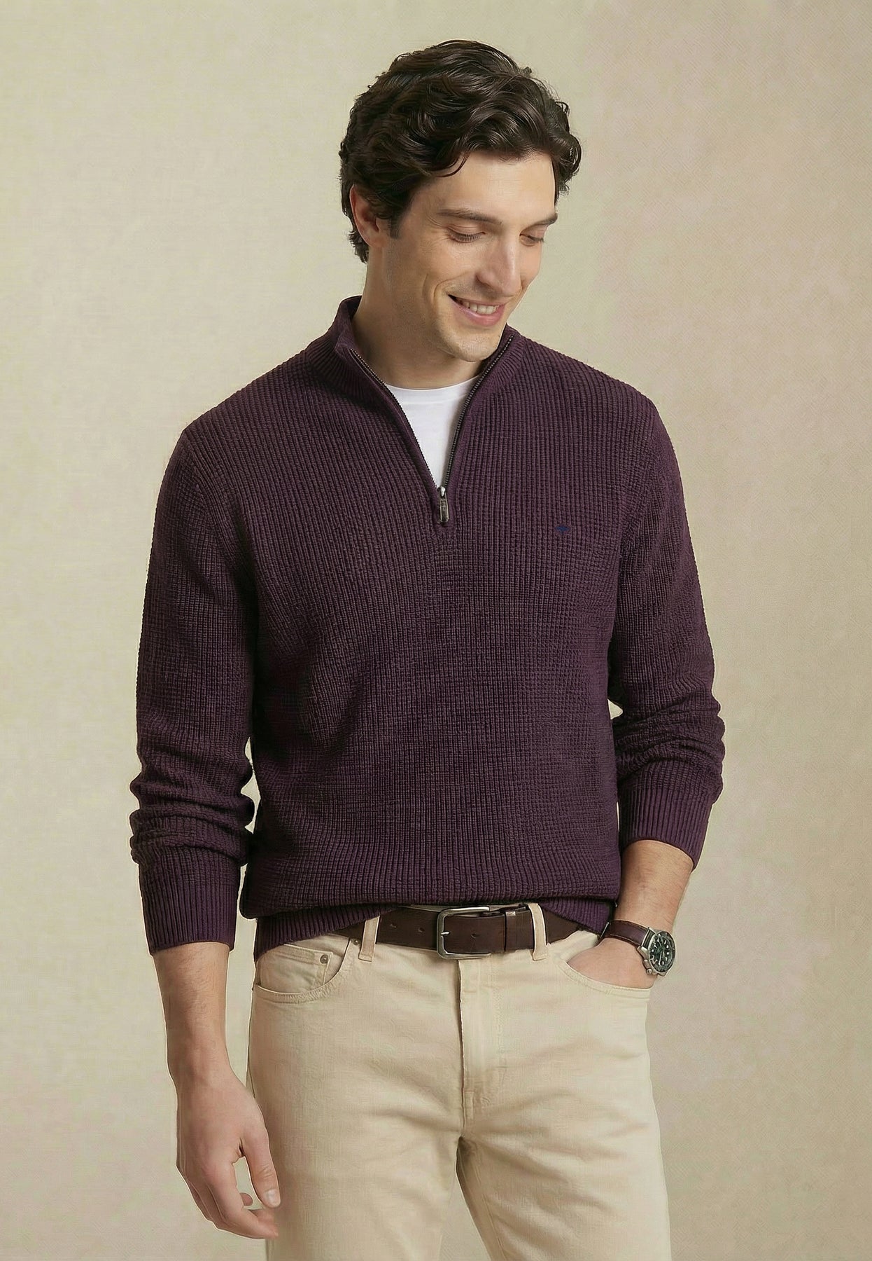 Der halbe Reißverschluss mit hohem Kragen verleiht diesem Troyer seinen sportlich-eleganten Look.