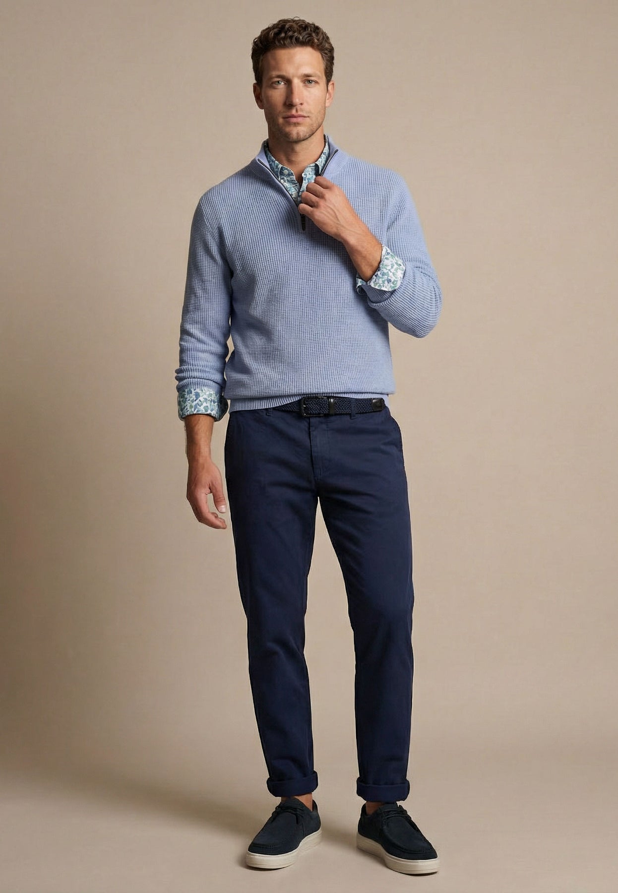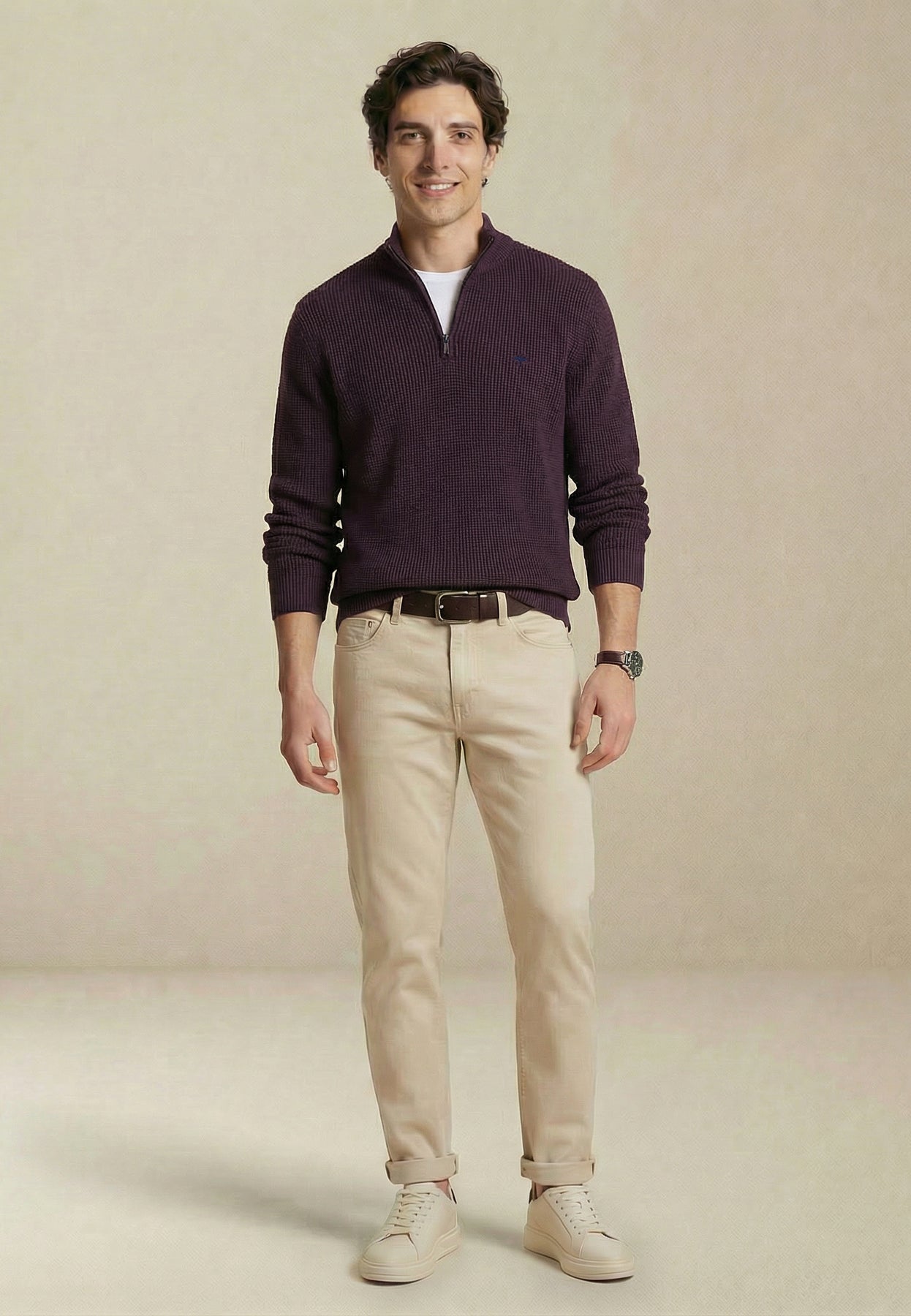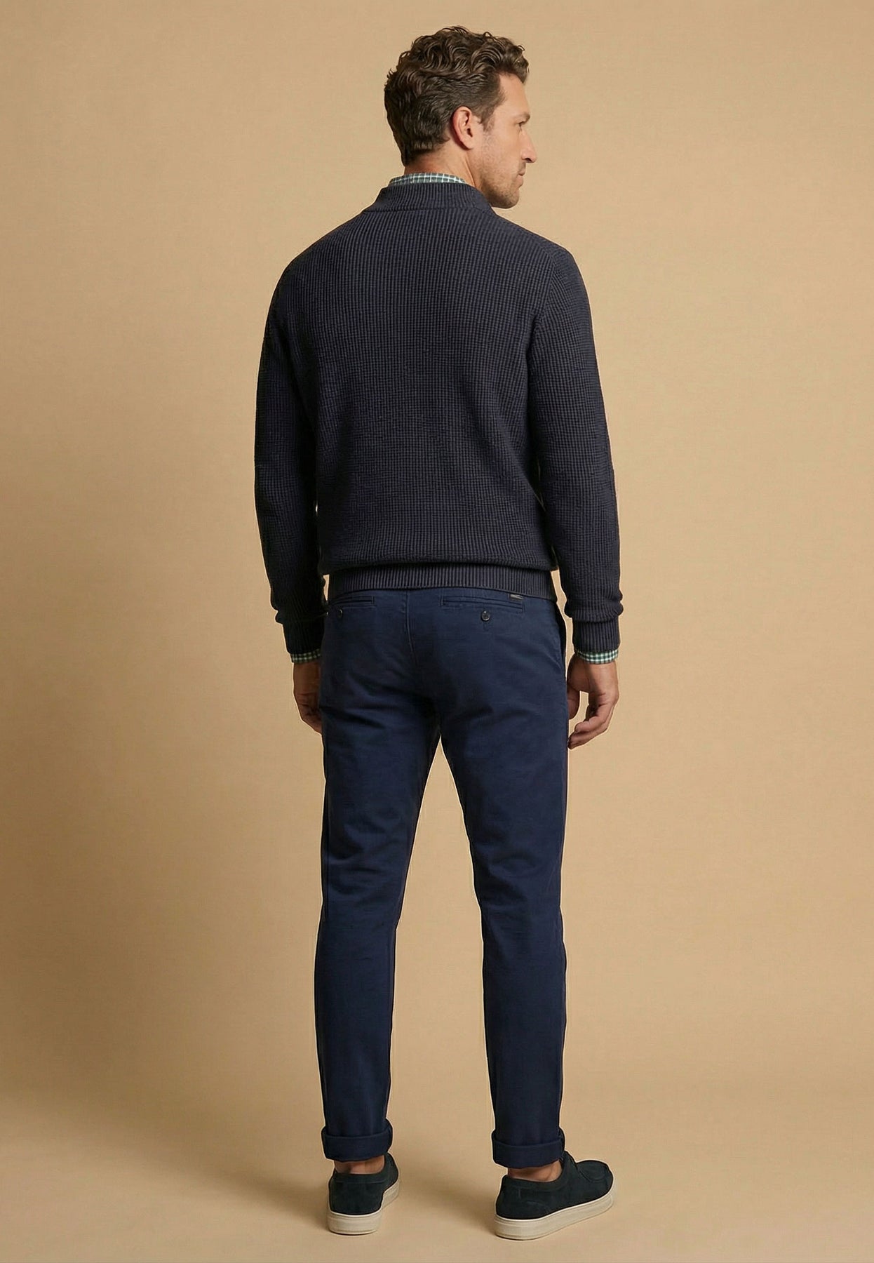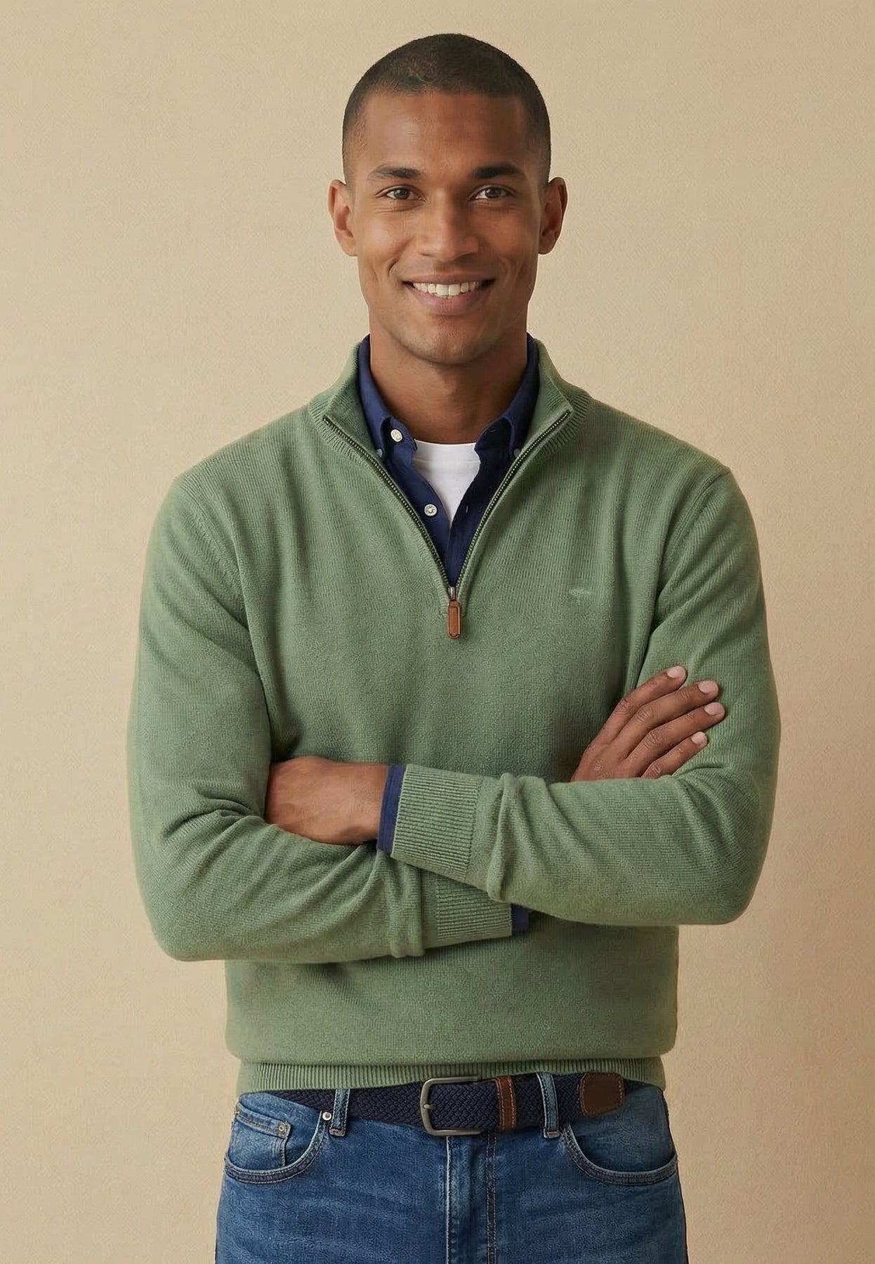 Der halbe Reißverschluss mit hohem Kragen verleiht diesem Troyer seinen sportlich-eleganten Look.