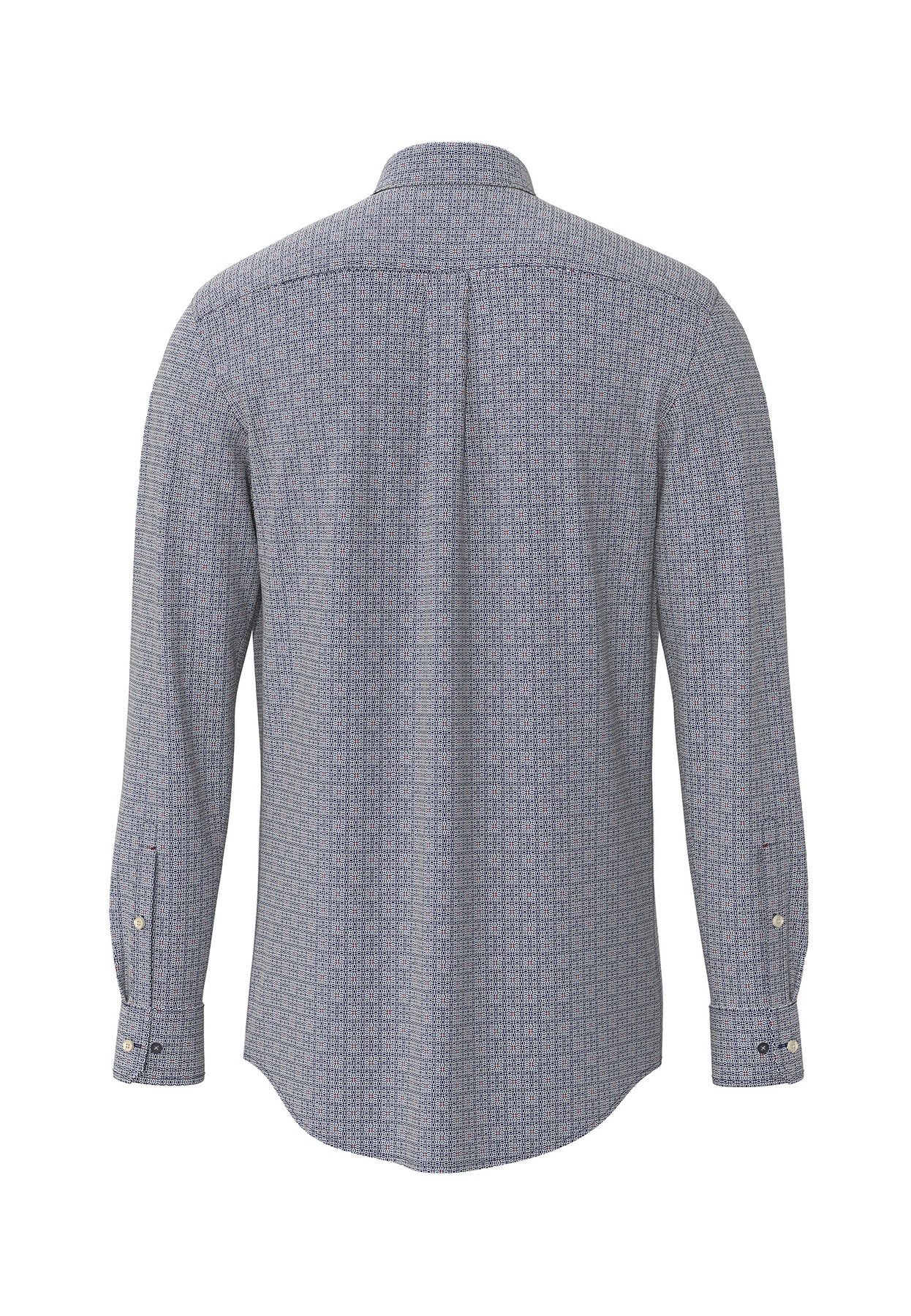 Der grafische Allover-Print verleiht diesem Hemd einen modernen, stilvollen Charakter mit einem Hauch von Raffinesse. Der Button-Down-Kragen und die klassischen Manschetten unterstreichen den smarten Look und machen es zum idealen Begleiter für Büro und Freizeit.