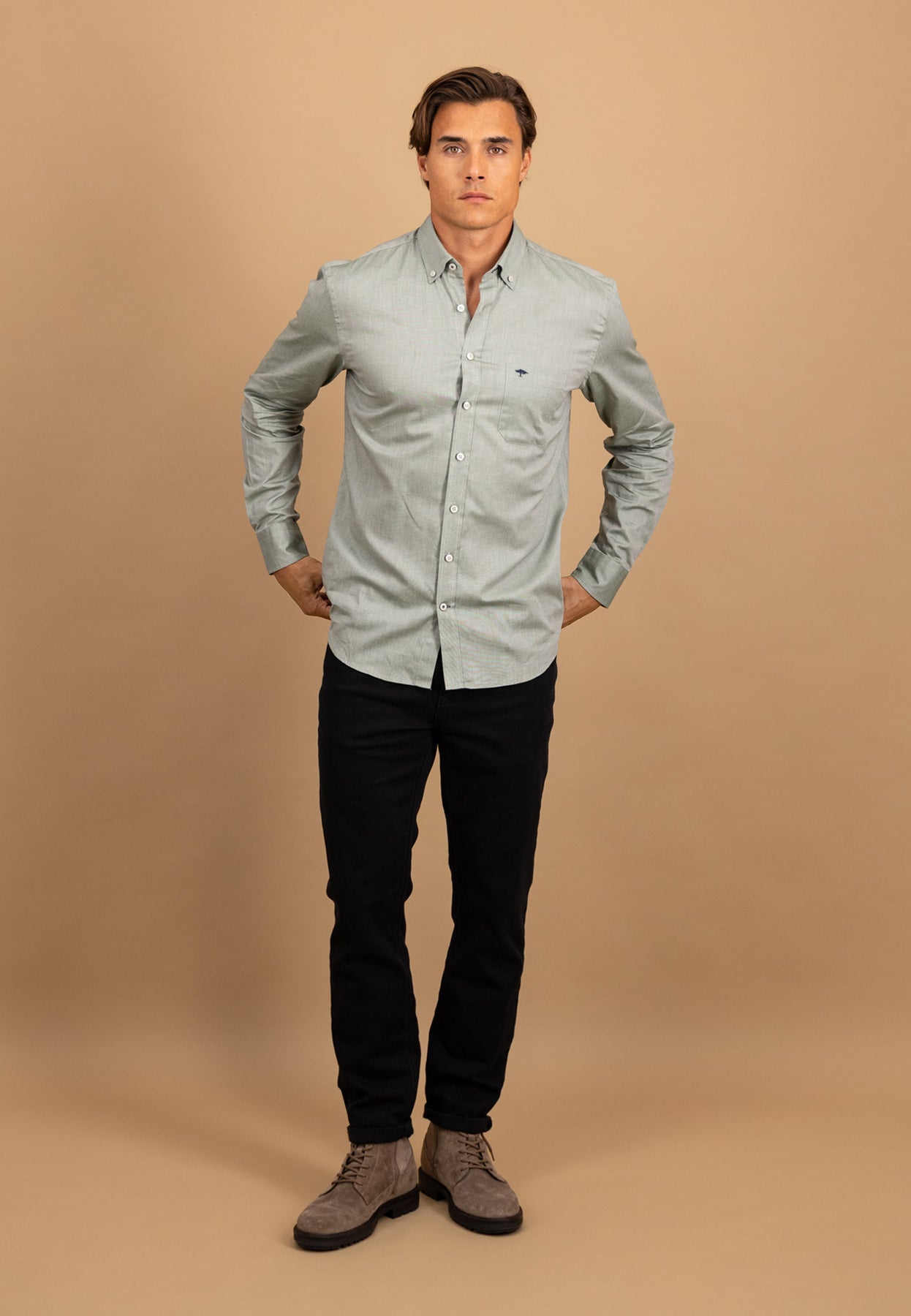 Dieses unifarbene Oxfordhemd überzeugt mit klarer Linienführung und zeitloser Eleganz – ein vielseitiger Klassiker für jede Gelegenheit.