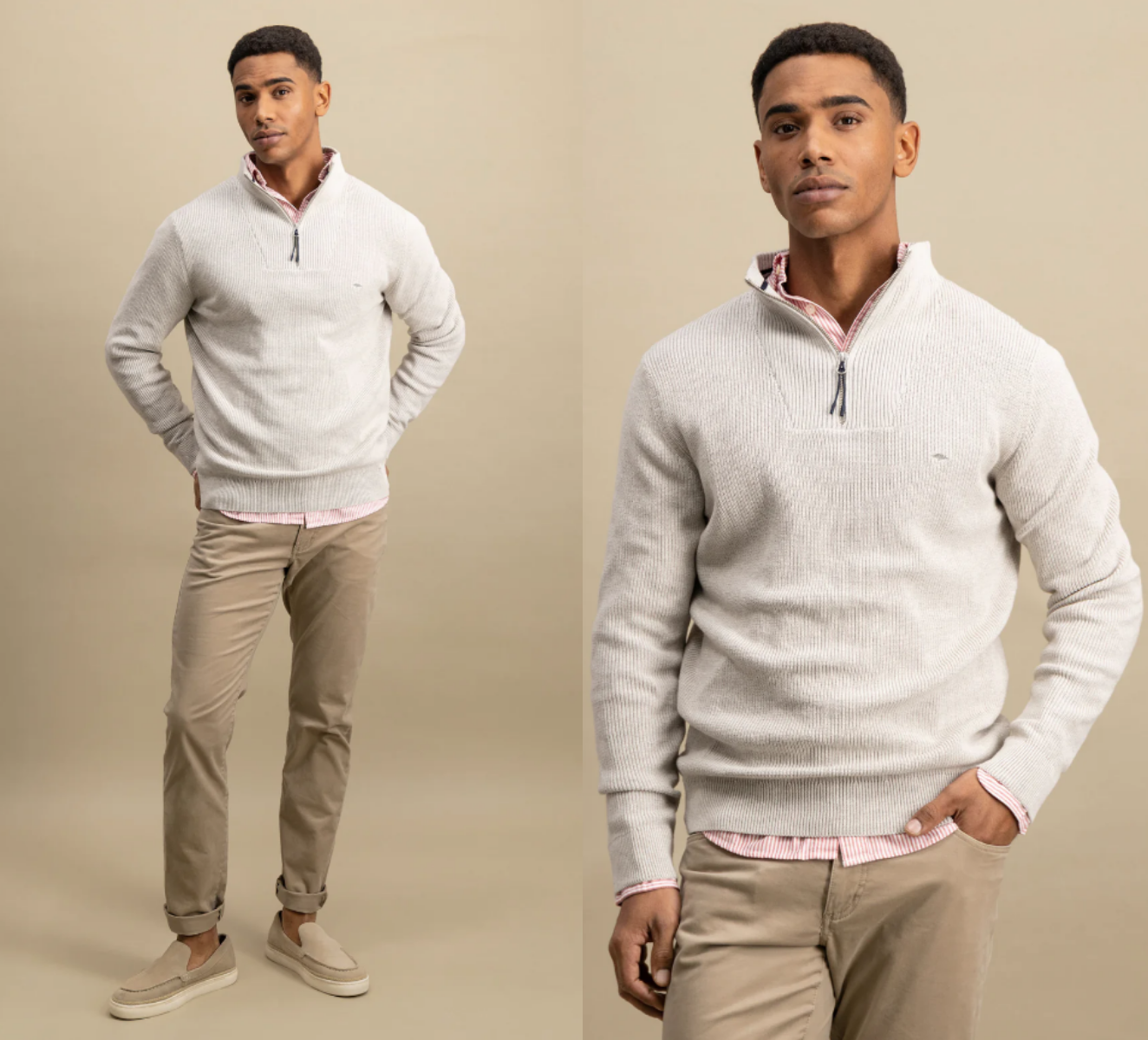 Bei der Farbwahl gilt: Entweder dezente, harmonische Töne wählen oder gezielt Akzente setzen. Ein weißes oder hellblaues Hemd unter einem dunkelblauen oder beigen Pullover bildet eine ideale Basis. Zeitlose Farben wie Grau, Dunkelblau oder Braun sind besonders vielseitig.