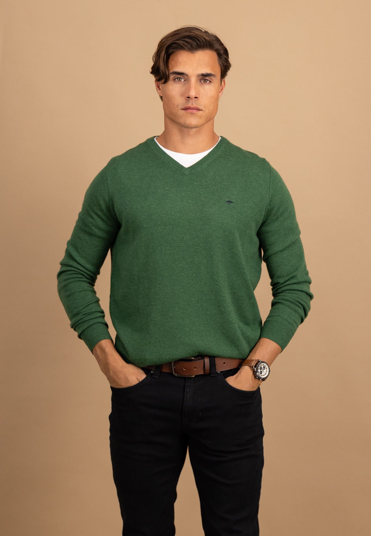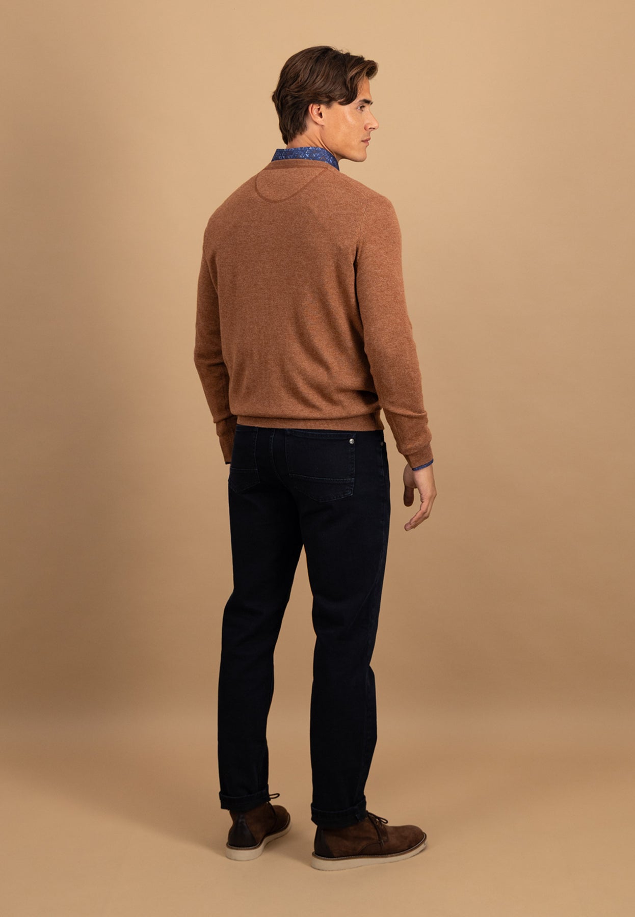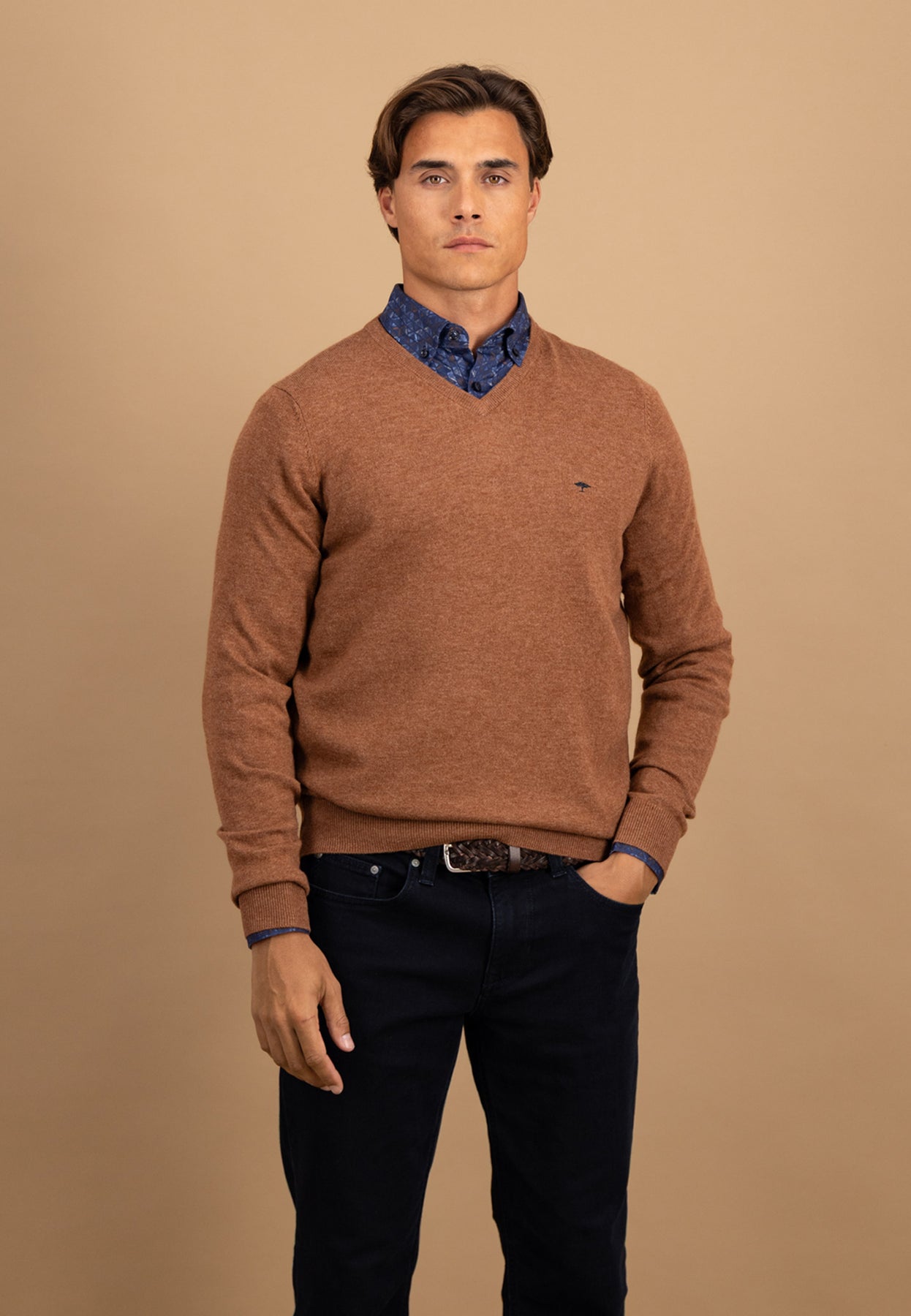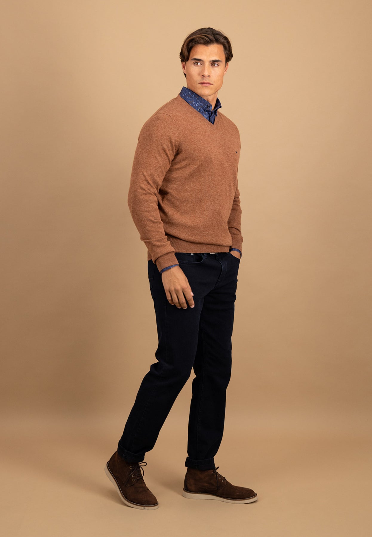 Der klassische V-Ausschnitt verleiht diesem Pullover eine zeitlose Eleganz und macht ihn zu einem vielseitigen Essential für stilvolle Looks.