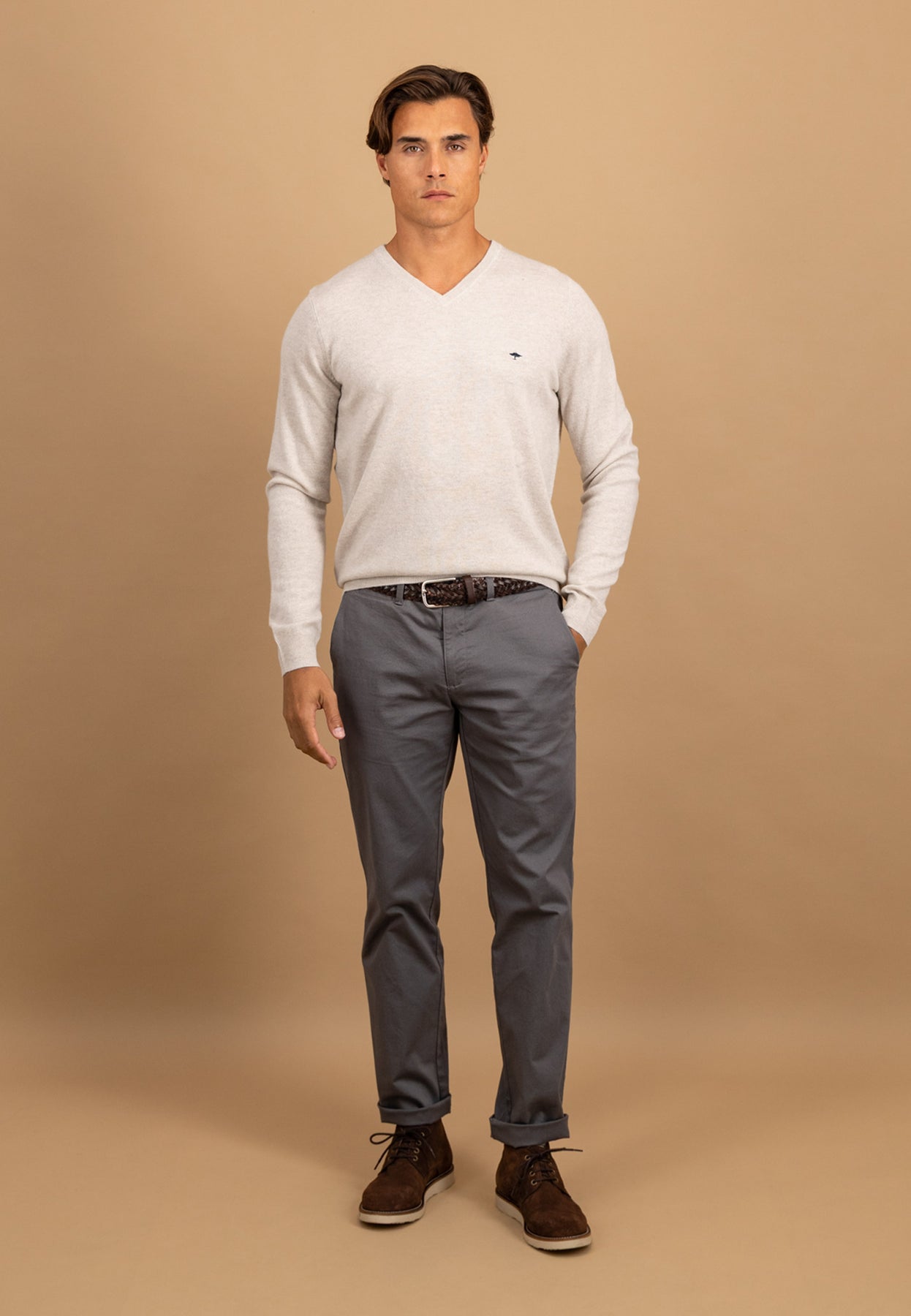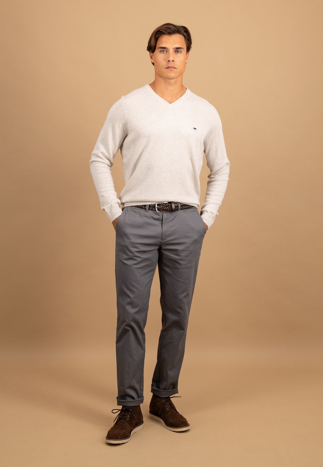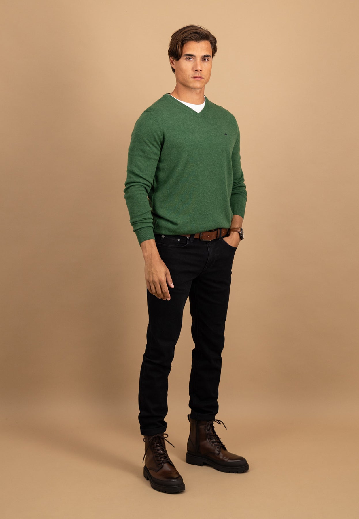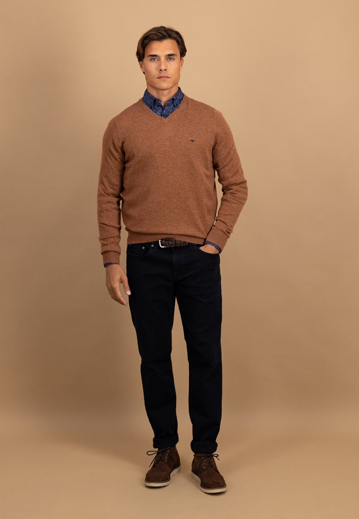 Der klassische V-Ausschnitt verleiht diesem Pullover eine zeitlose Eleganz und macht ihn zu einem vielseitigen Essential für stilvolle Looks.