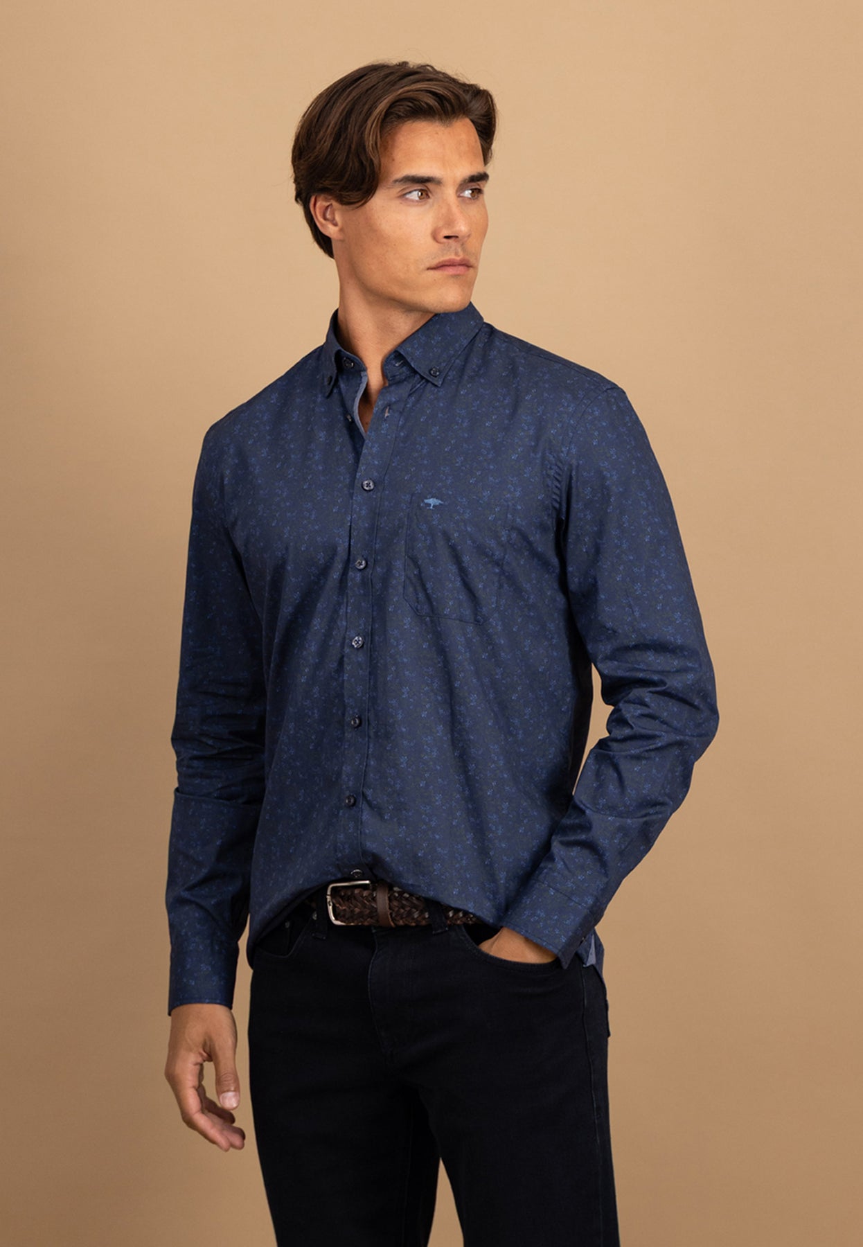 Dieses Hemd überzeugt mit einem detailverliebten floralen Minimal-Print und bringt frische Akzente in Ihre Garderobe. Der klassische Button-Down-Kragen sorgt für eine gepflegte Optik und unterstreicht die stilvolle Wirkung des Designs.