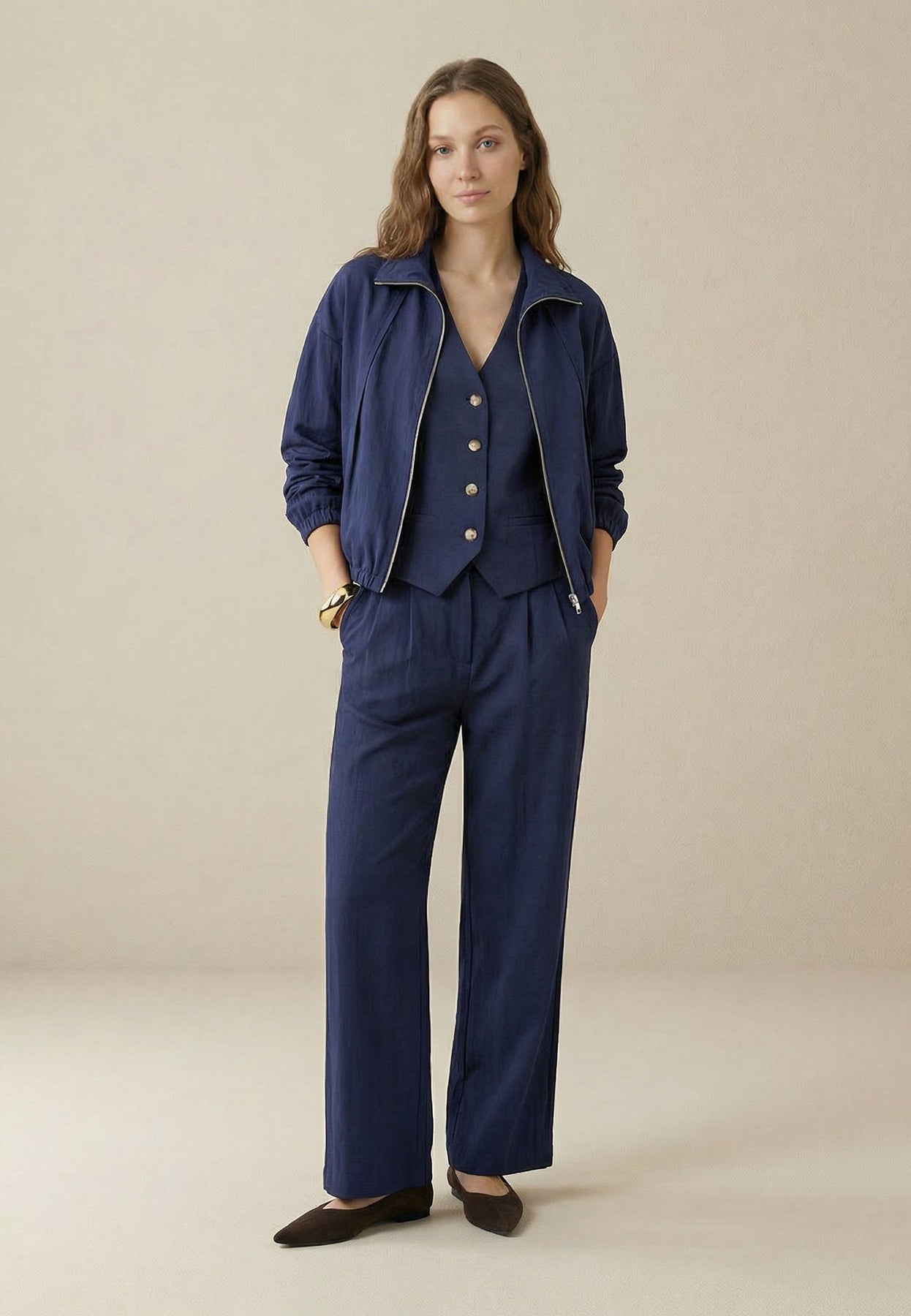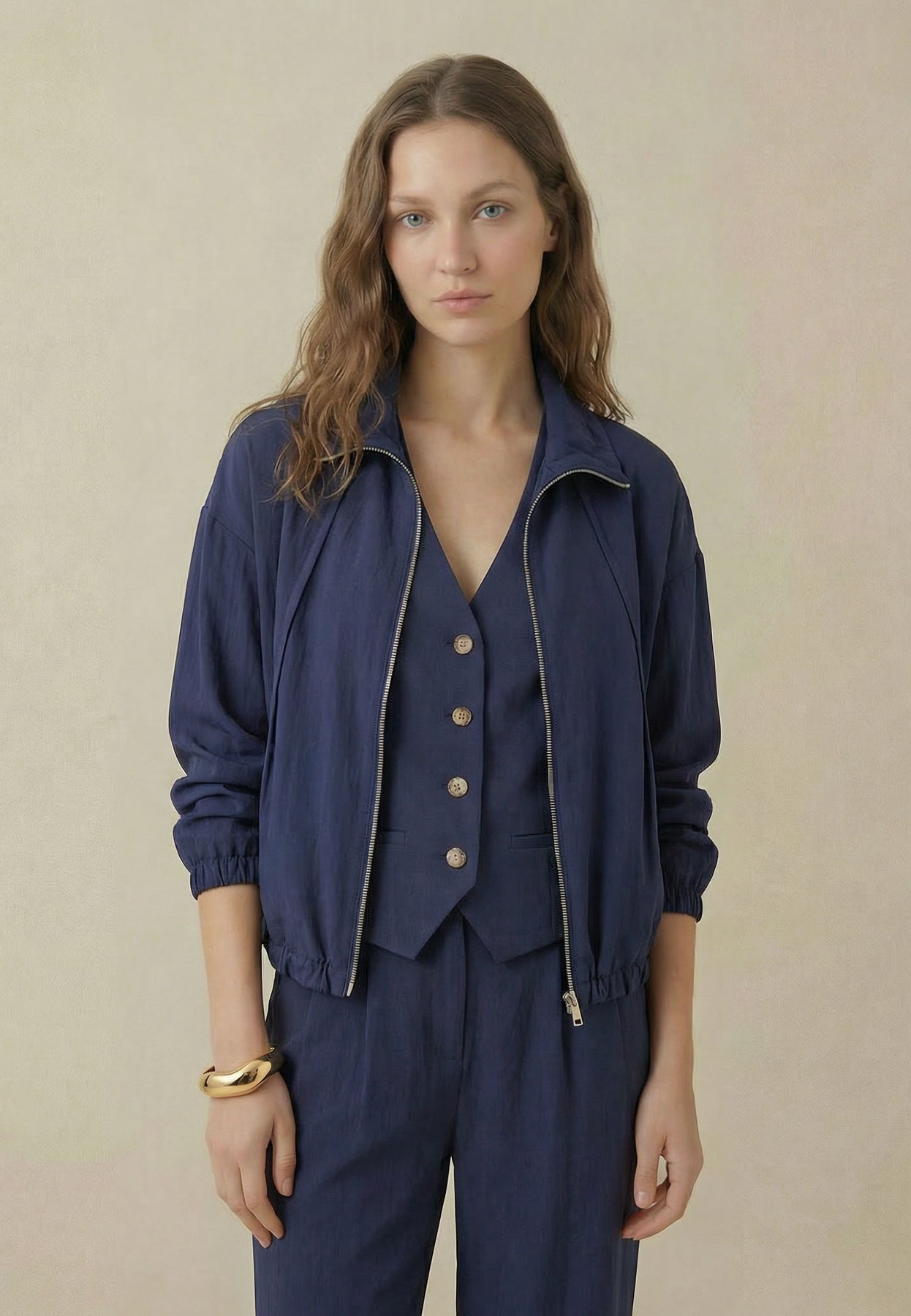 Diese leichte Jacke überzeugt durch ihre moderne, cleane Silhouette und ein angenehm fließendes Material. Der hochwertige Lyocell-Viskose-Mix sorgt für ein weiches Tragegefühl und einen natürlichen Fall. Der durchgehende Reißverschluss sowie der elastische Saumabschluss unterstreichen den sportiv-eleganten Look. Vielseitig kombinierbar und ideal für Übergangszeiten – ein stilvoller Begleiter für Alltag und Freizeit.