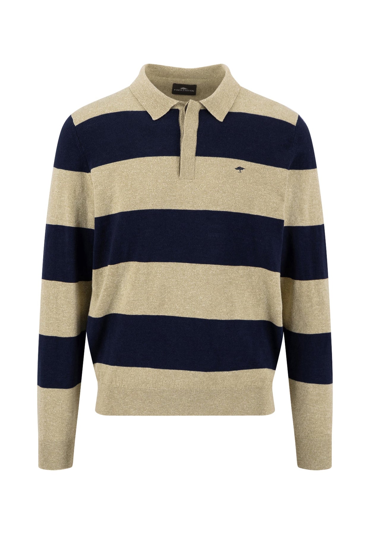 Langarm-Poloshirt aus Baumwoll-Leinen-Mix mit Blockstreifen