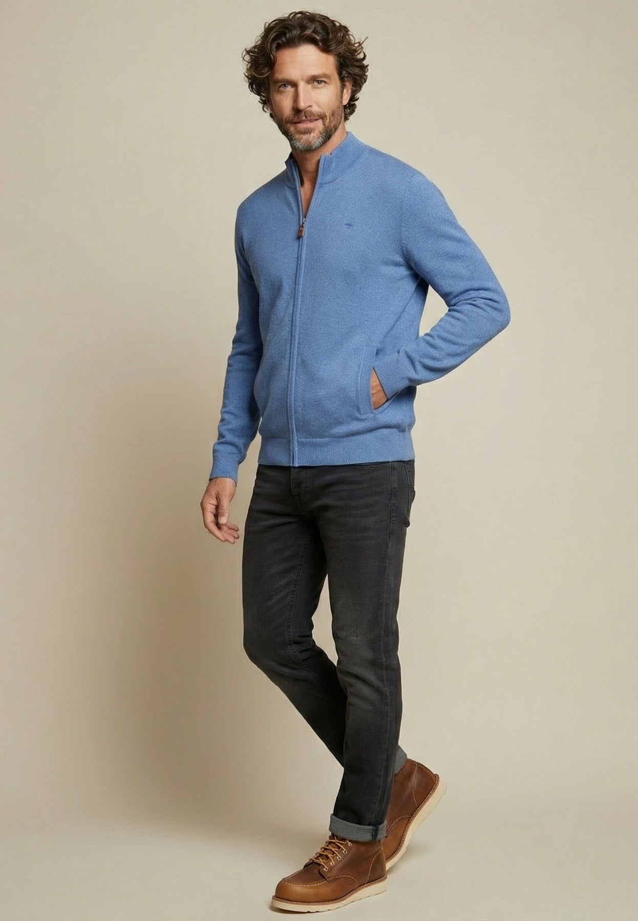 Diese Strickjacke überzeugt mit feinem Maschenbild und einem edlen, zeitlosen Look. Der Stehkragen und der durchgehende Reißverschluss sorgen für eine moderne Silhouette, während Rippbündchen an Saum und Ärmeln für angenehmen Sitz sorgen.