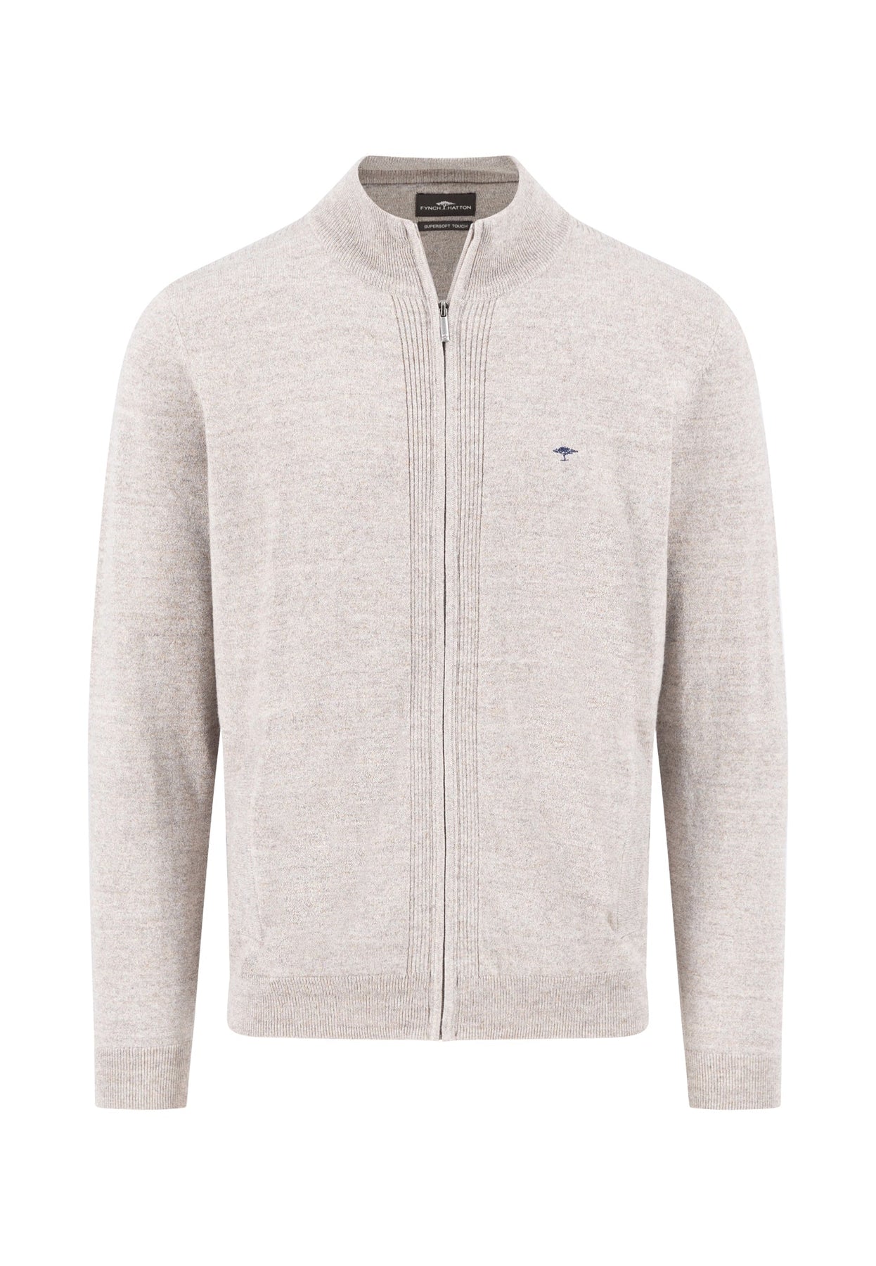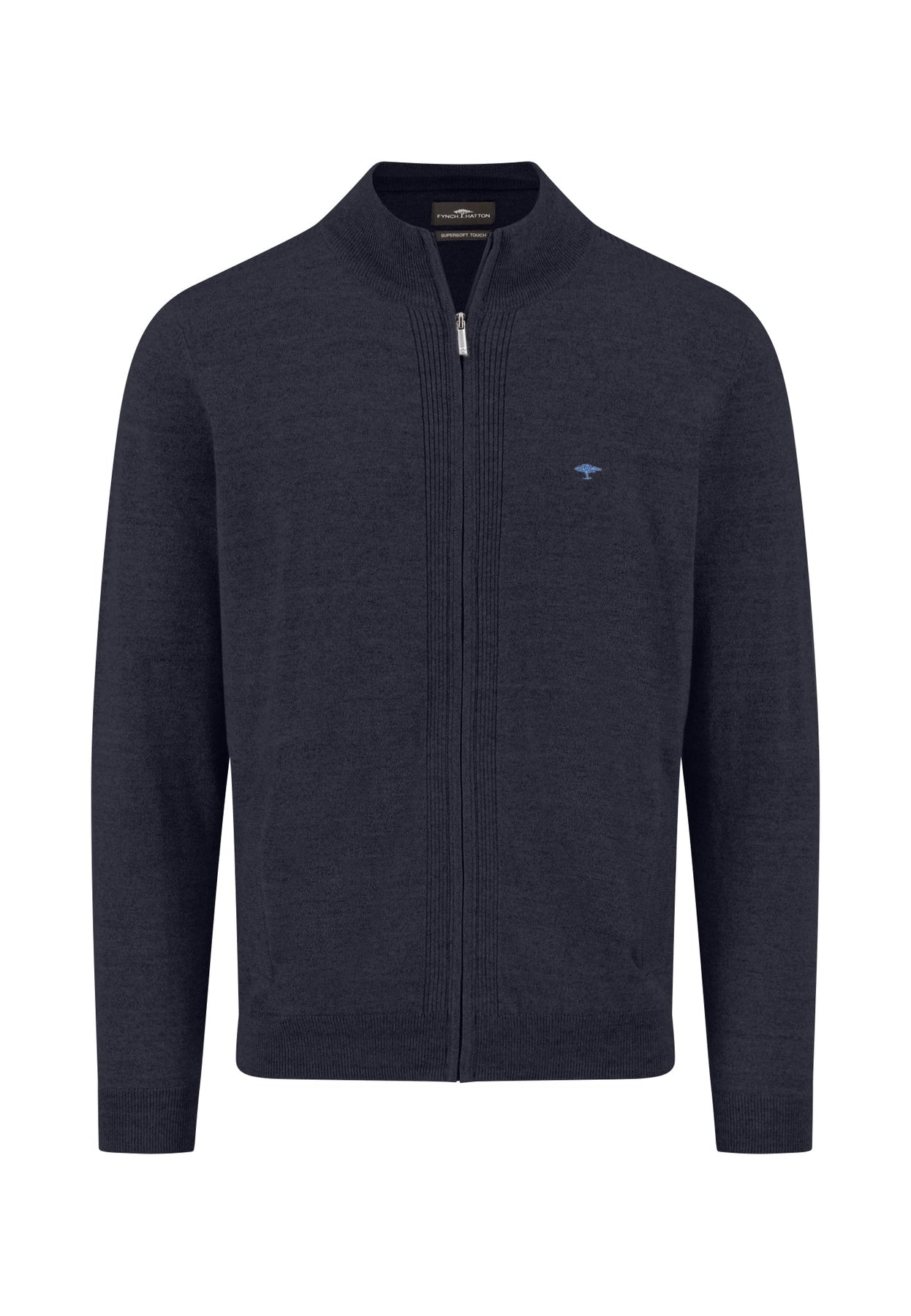 Diese Strickjacke verbindet zeitloses Design mit hochwertigen Materialien. Der dezente Strukturverlauf entlang des Reißverschlusses und der Stehkragen verleihen ihr eine gepflegte, moderne Optik. Rippbündchen an Saum und Ärmeln sorgen für eine komfortable Passform.