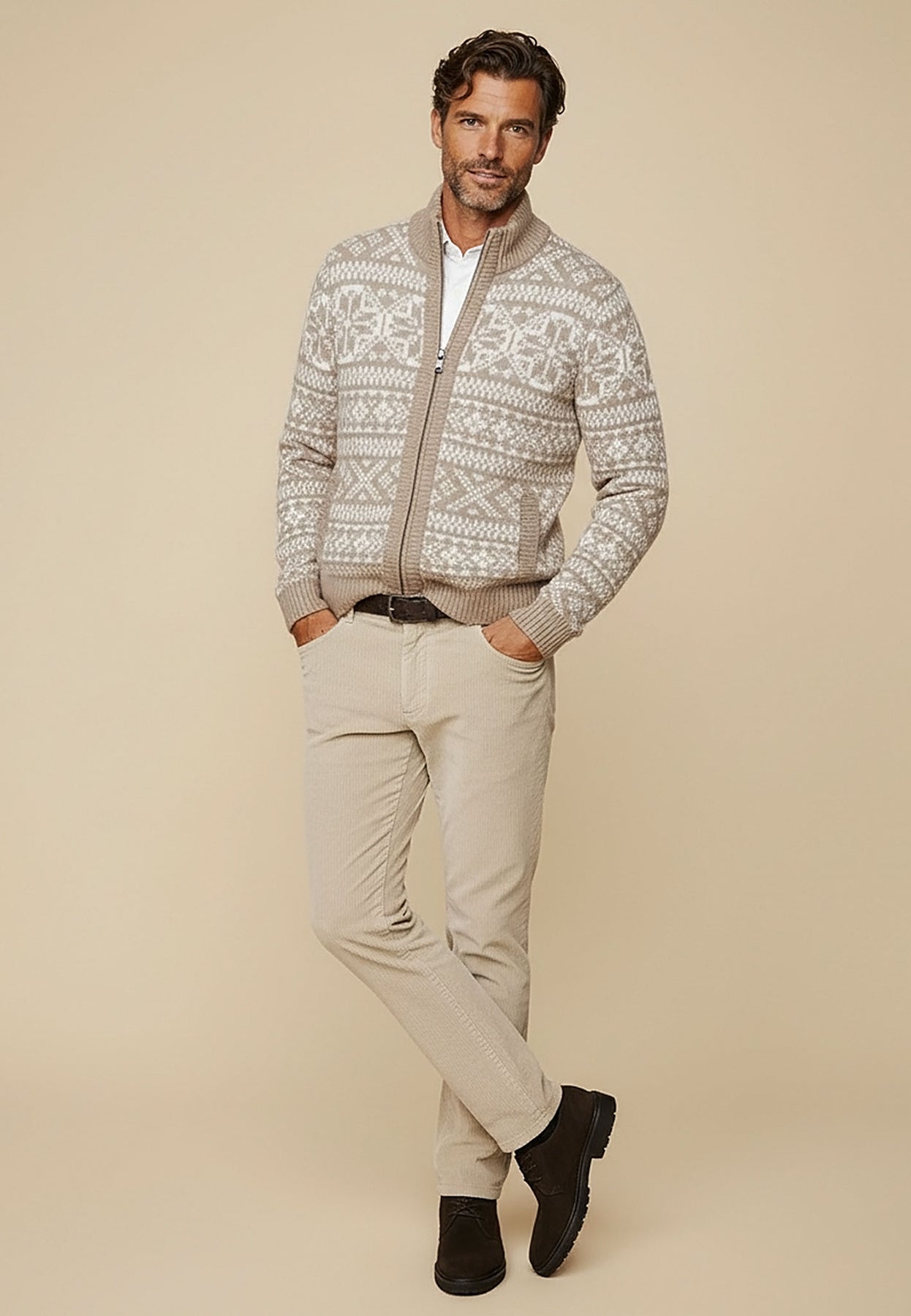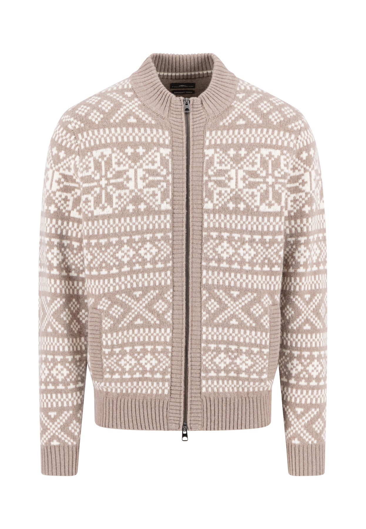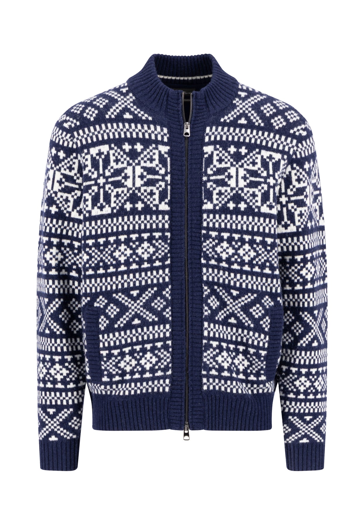 Strickjacke aus Wollmix mit Norweger-Muster und Reißverschluss