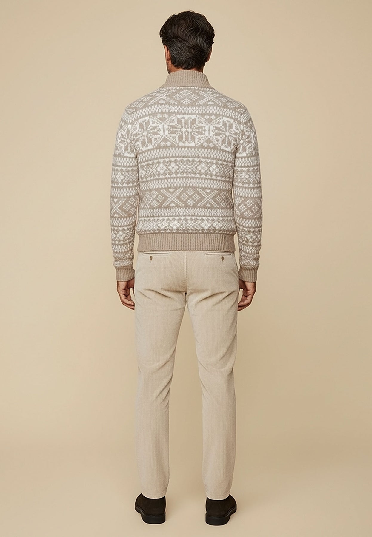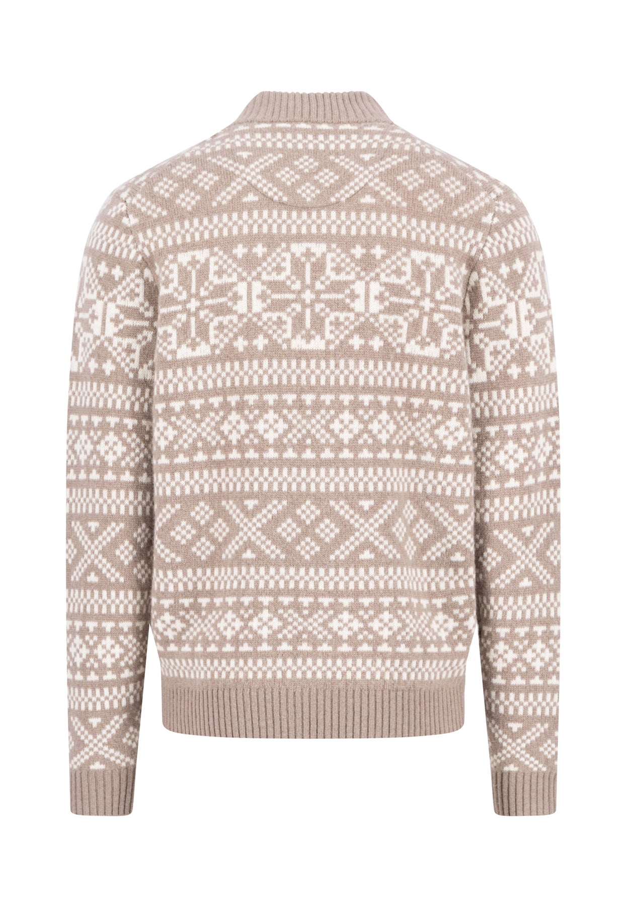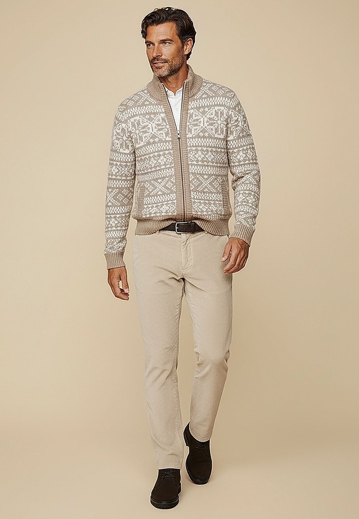Strickjacke aus Wollmix mit Norweger-Muster und Reißverschluss