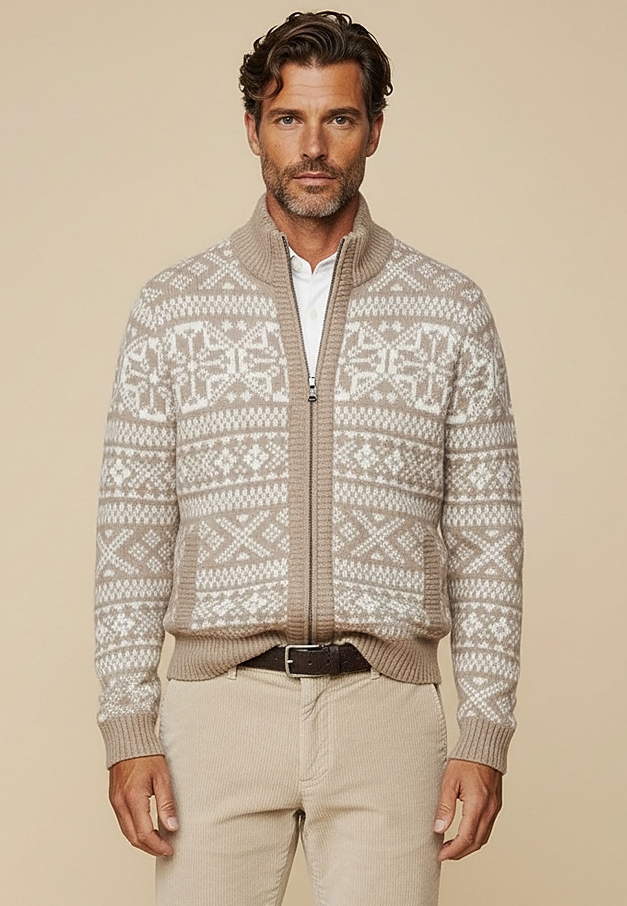 Mit dieser Strickjacke aus weicher Wolle bringst du winterliches Flair in deinen Alltag. Das klassische Norweger-Muster und der praktische Reißverschluss sorgen für einen modernen Look, während der wärmende Strick dir an kalten Tagen besten Komfort bietet.
