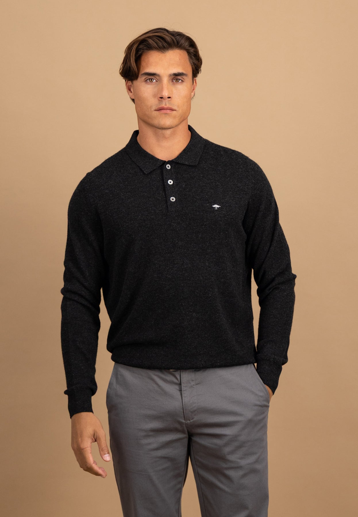 Der klassische Polokragen und die feine Strickstruktur verleihen diesem Pullover eine elegante Ausstrahlung mit sportivem Akzent.