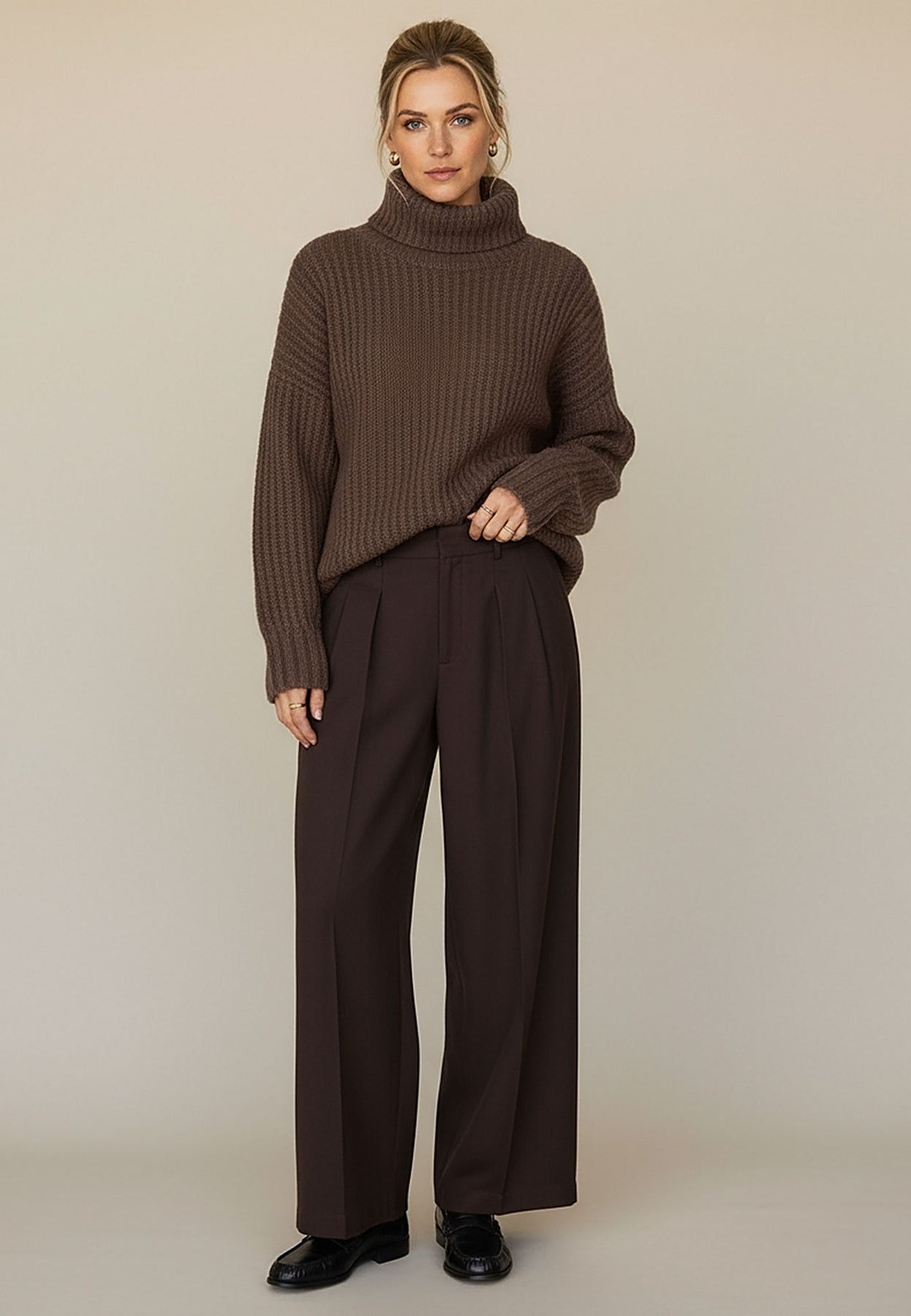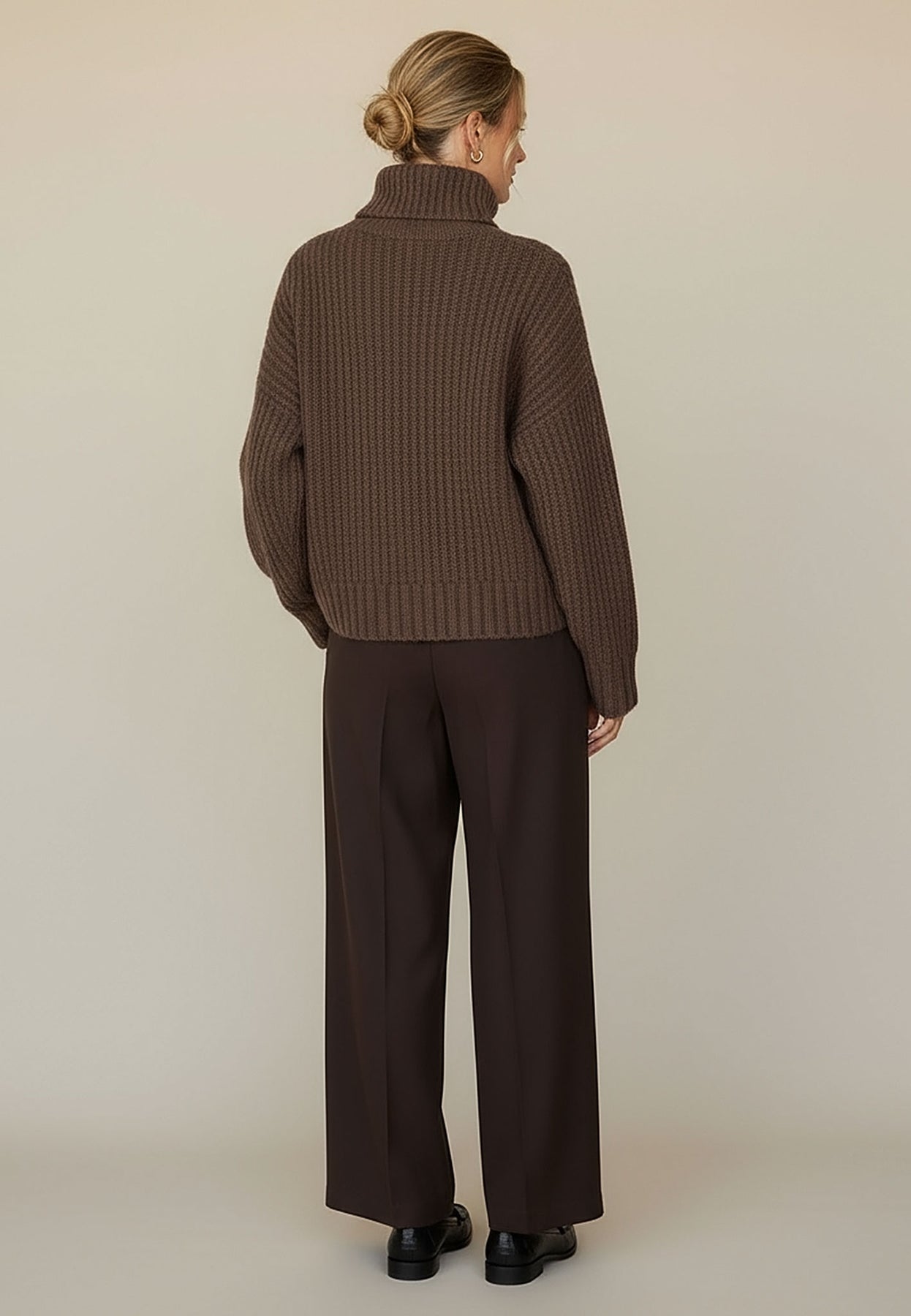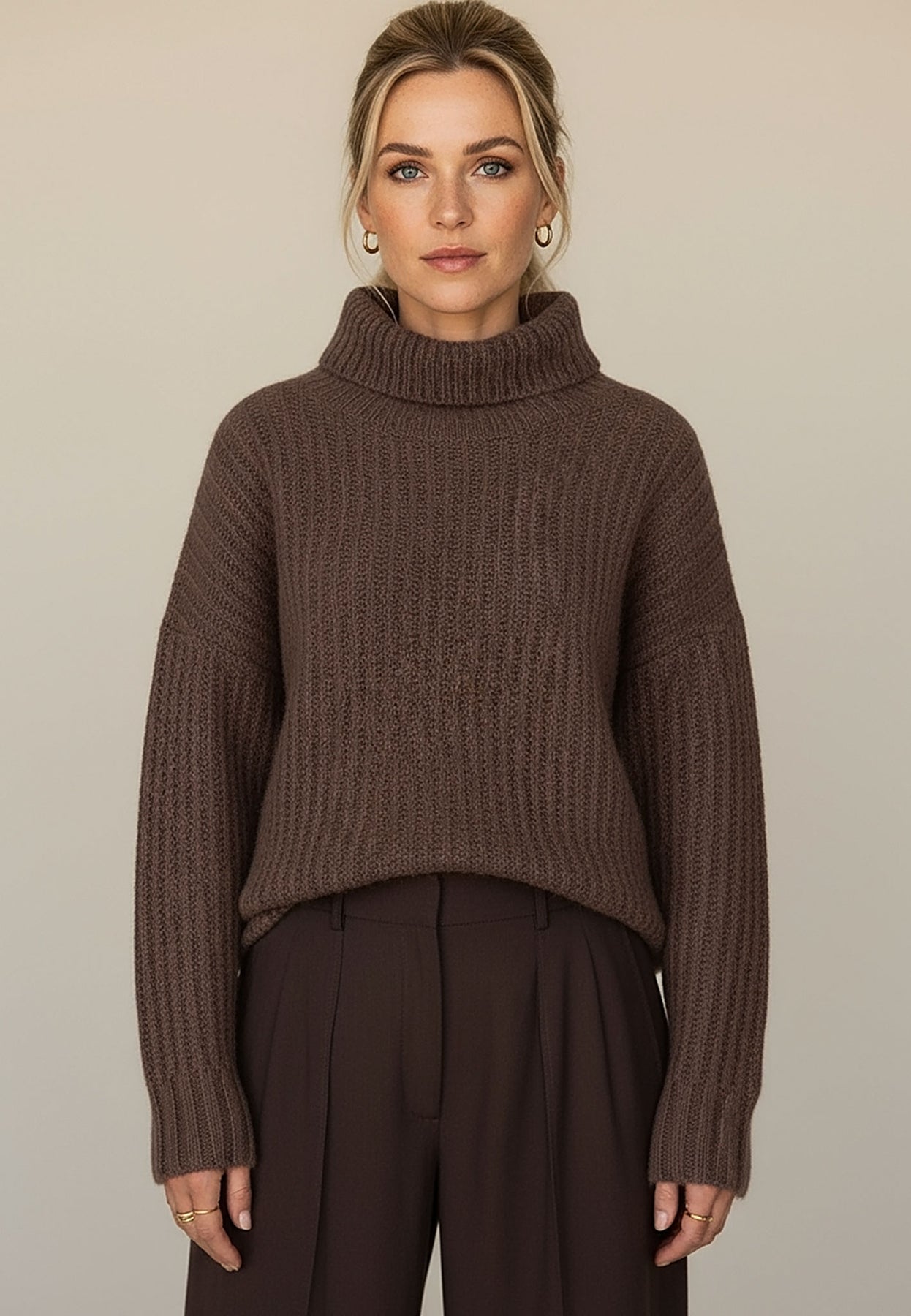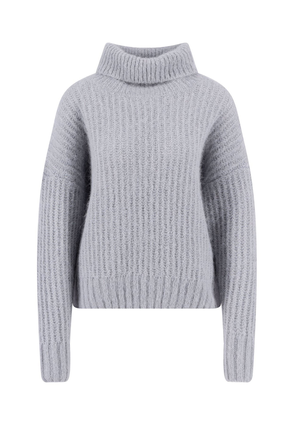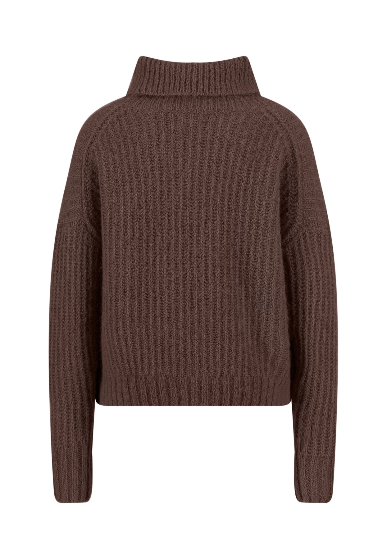 Der weiche Rollkragen und die voluminöse Strickstruktur machen diesen Pullover zum perfekten Begleiter für frostige Tage.