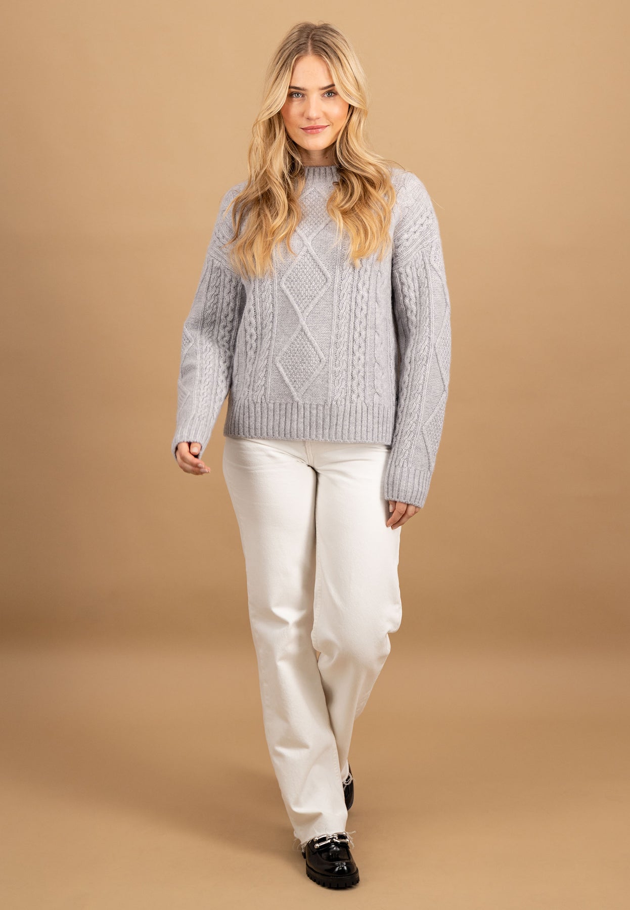 Der aufwendig gearbeitete Strukturmix macht diesen Pullover zu einem stilvollen Blickfang mit besonderer Ausstrahlung.